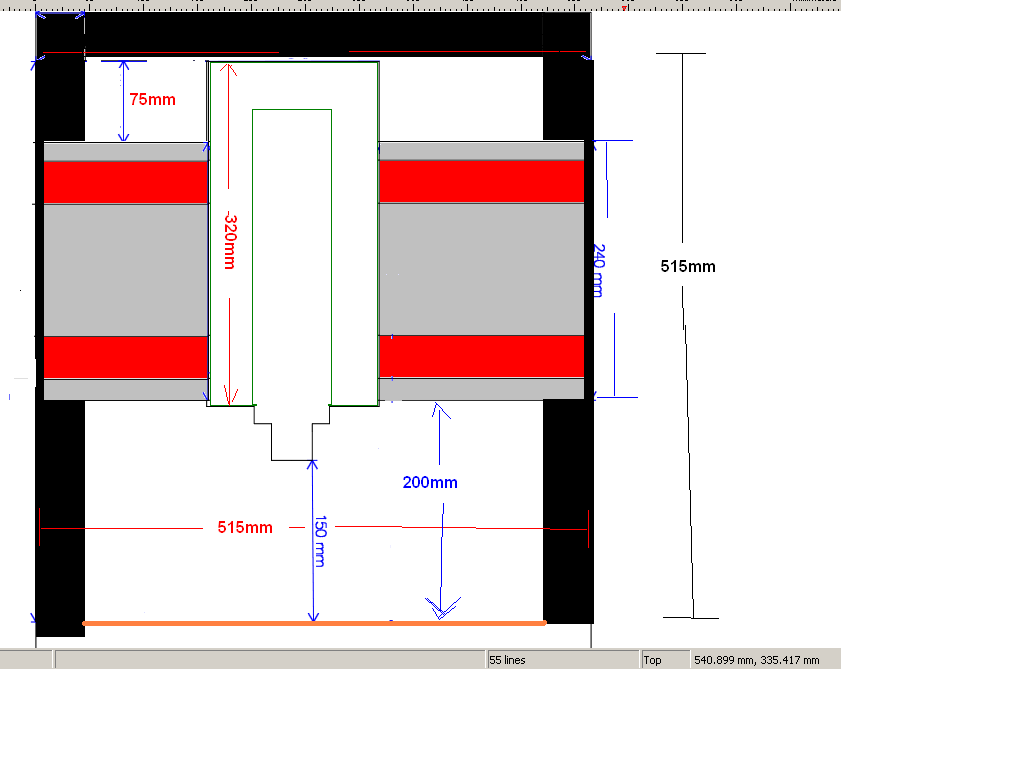 I done a drawing for what I think it will look like, but I cant work out if I have enough Z travel, plus the best way to mount the Z motor ? as there doesn't appear to be enough room for it on the front or back of the Z plates. I might have calculated something wrong or there might be better ways be moving components around.