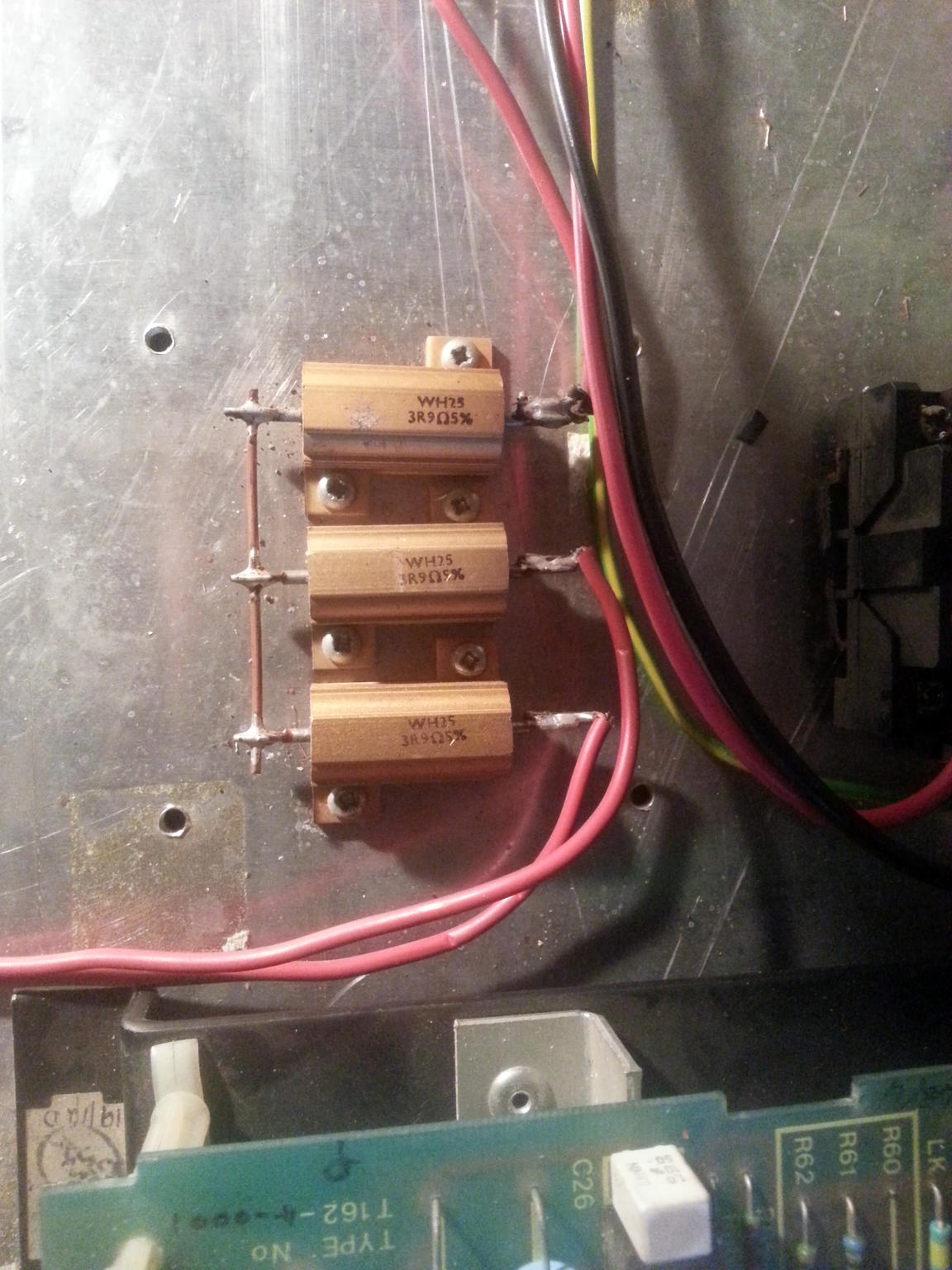 the 3 resistors I believe reduced the current going into the power into the relays to stop them burning out when in operation.