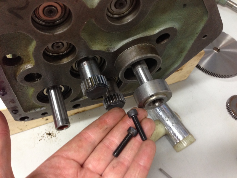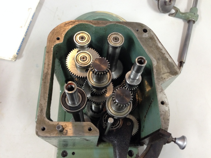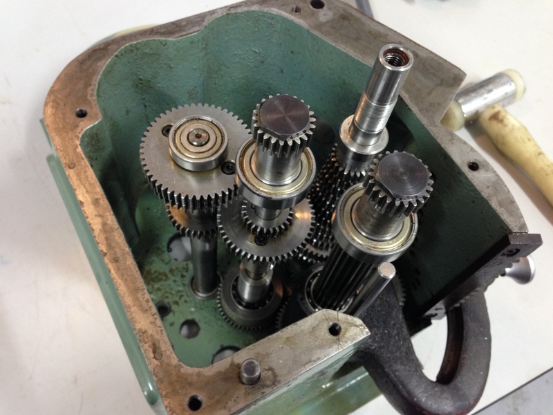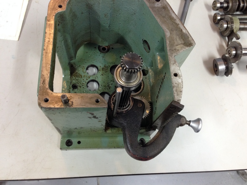 The cover can then go back on, the idler gear can go in later as can the shaft and dog for threading direction selection. The selector switches can also go in later when I will be able to see how it all aligns more easily.