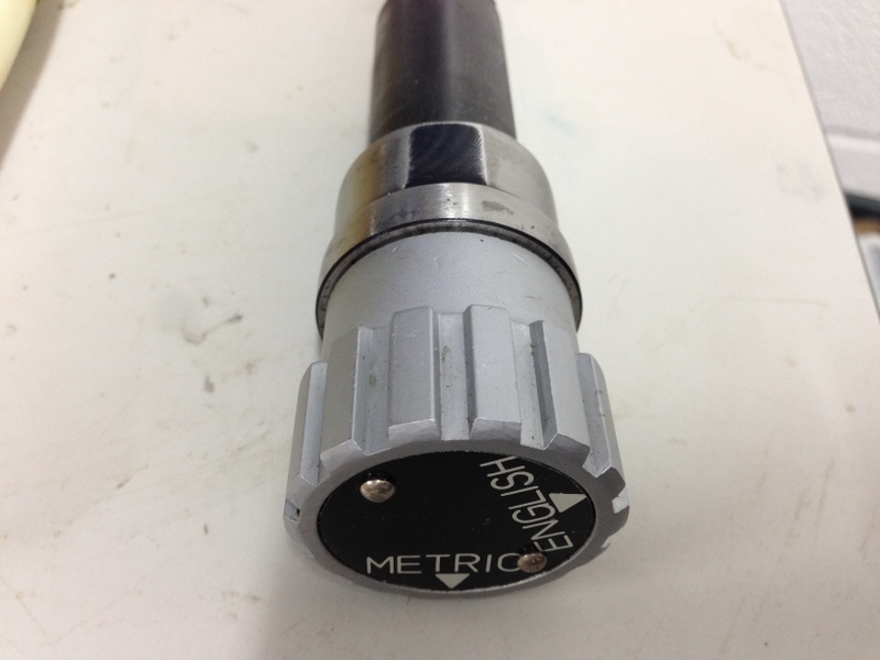 Similarly set up the English/Metric knob so that Metric is at the bottom. Push the fork so that the gear engages with the shaft that drives the external imperial/metric converter gearing. Then insert the selector knob, test the function. The output shaft makes this much easier.