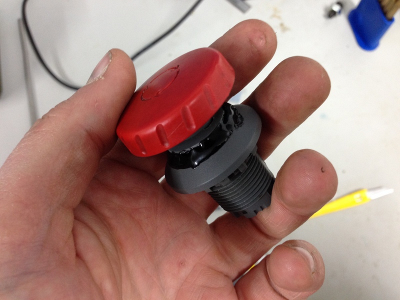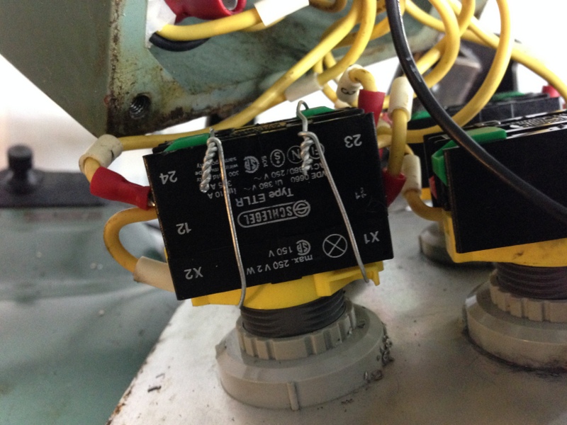 The stop switch was extremely stiff, I stripped it down and cleaned it, deburred some little plungers and reassembled. The original ultrasonic weld joints were broken so as a temporary measure I hot glued it after keying it with sandpaper. I will replace the switch in due course. The power button's lamp was also not working and I found that the switch was falling apart. I have ordered an LED lamp replacement and tied it all together with some wire for now, again I will replace it later.