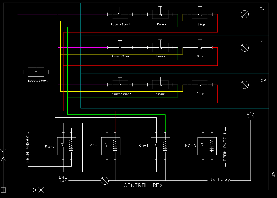 Don't get me wrong, I have a large percentage of your drawings worked out, it has taken me a while but I got there and have run wires :) This last little bit should see the control box interacting with the computer by weeks end just to verify the pushing a button does what it is supposed to.