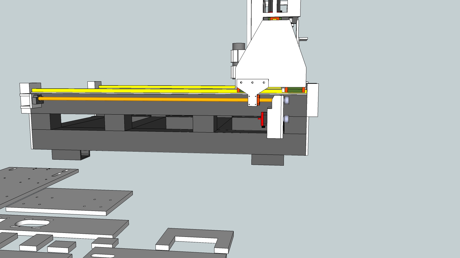 + the plate that is attached to ball screw housing also by being on the left and it shape / can go further right/ helps things and reduces ball screw length.