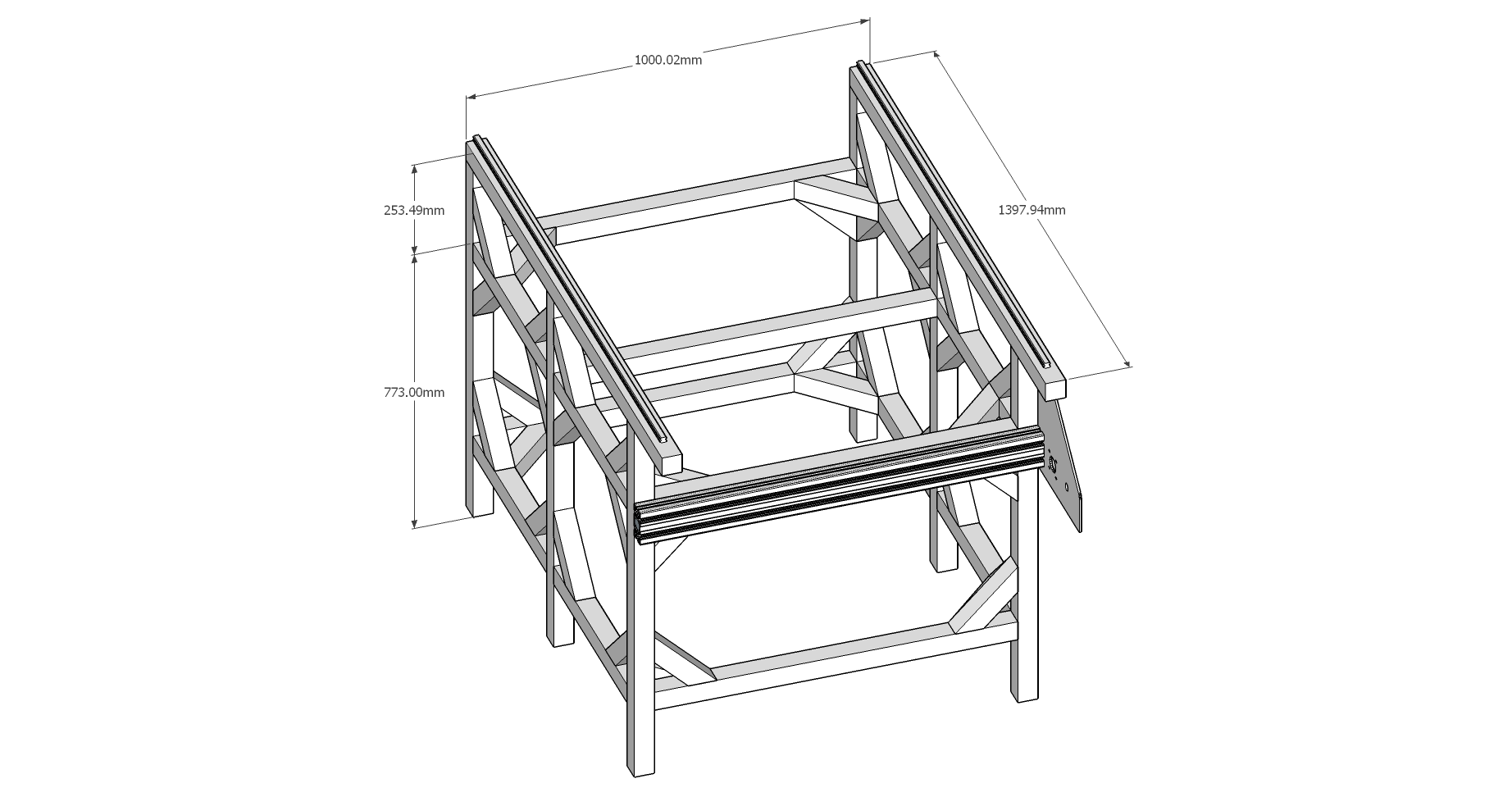 90x45 Al profile across the front, provides for a moveable tailstock, running on the profile.
