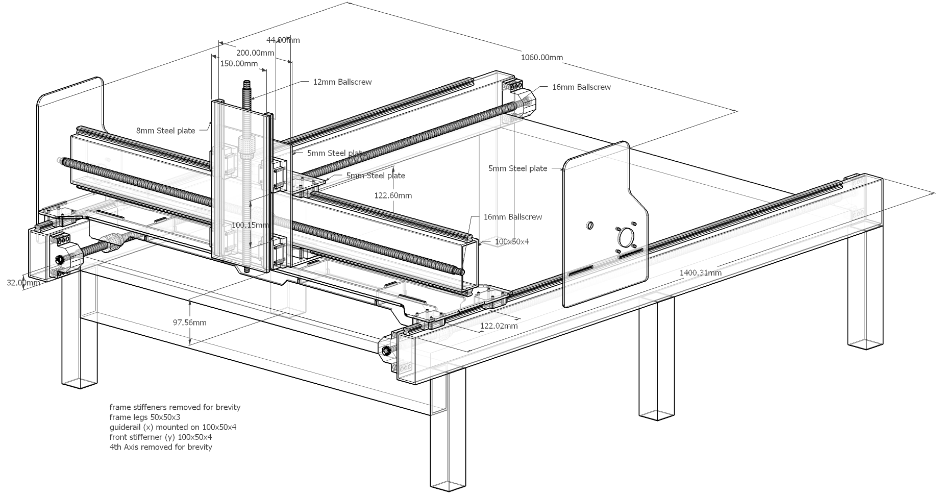 My bad! I should have said the end plates are 5mm steel plate, as are the gantry cross plate (bottom plate) and 4th axis mount plate.