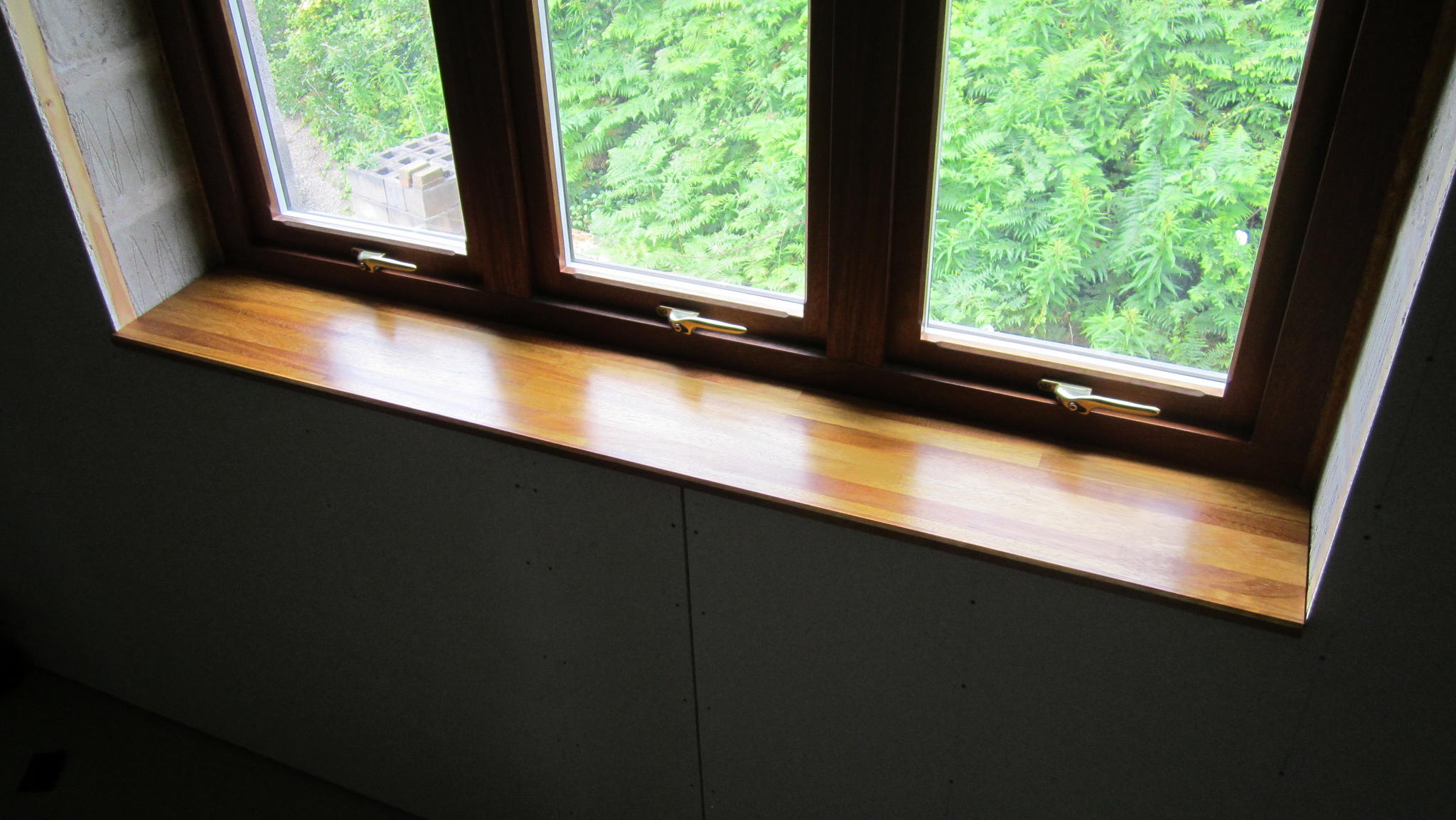 If you notice you will see the glue extruded through the joints between the veneers. This was a trial run to see if i could make a half decent job of it as i intend to do all my sills the same (the windows are Iroko also)
