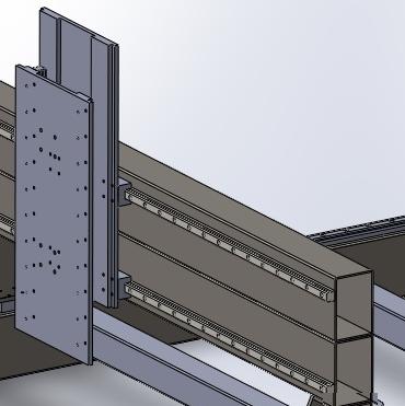 Gantry attached with gantry side using steel angle brackets in the front for more rigidity and stiffens like this.