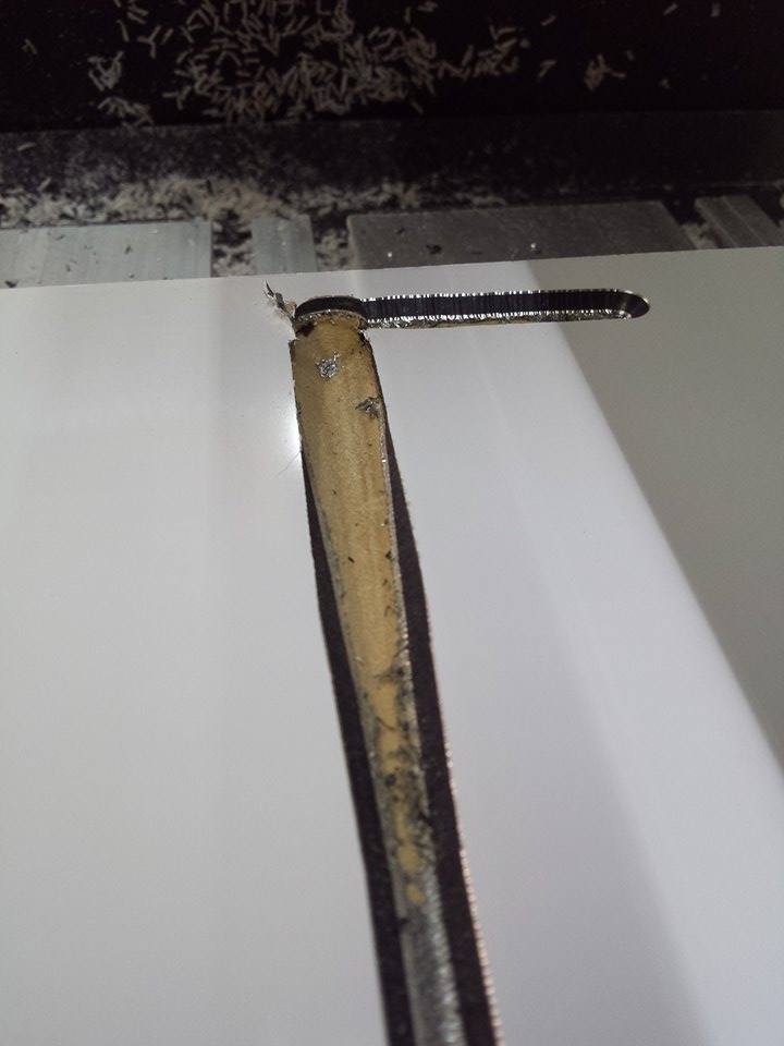 Unfortunately, a week down the line we started getting a problem where the Z axis would just drop, ploughing through the sacrificial board and sometimes in to the polymer base! The odd thing is that it will go from cutting 0.3mm at the start of the vector to cutting down to 15mm.
