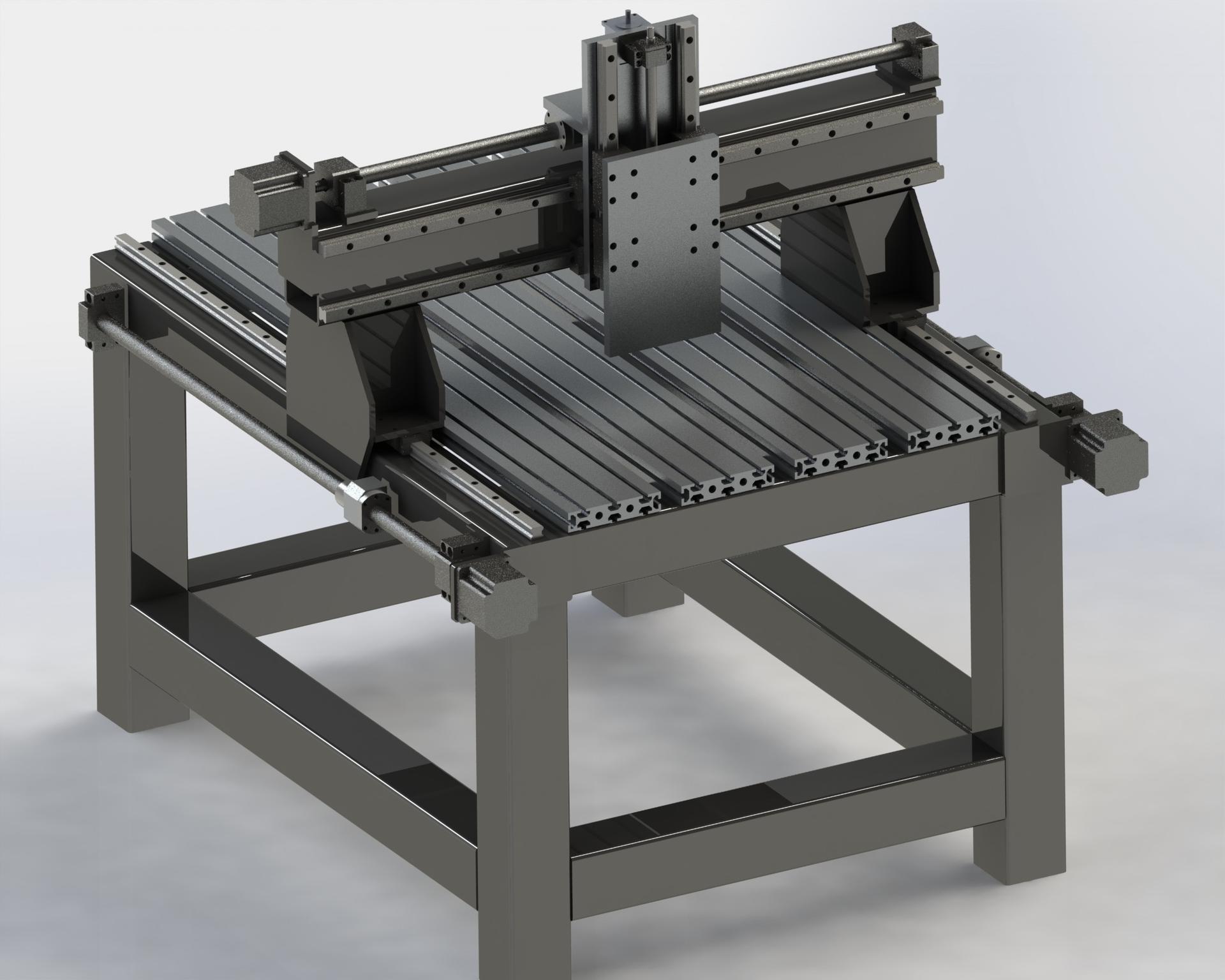 The gantry and all components attached to it weighs in at 100kg. From dual-driving the gantry, the combined linear force of both motors amounts to 2400N.