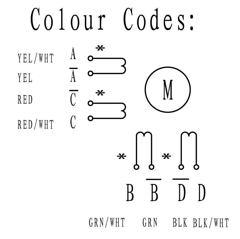 However the Driver datasheed does not give colour codes http://www.motioncontrolproducts.com...ing-driver.pdf