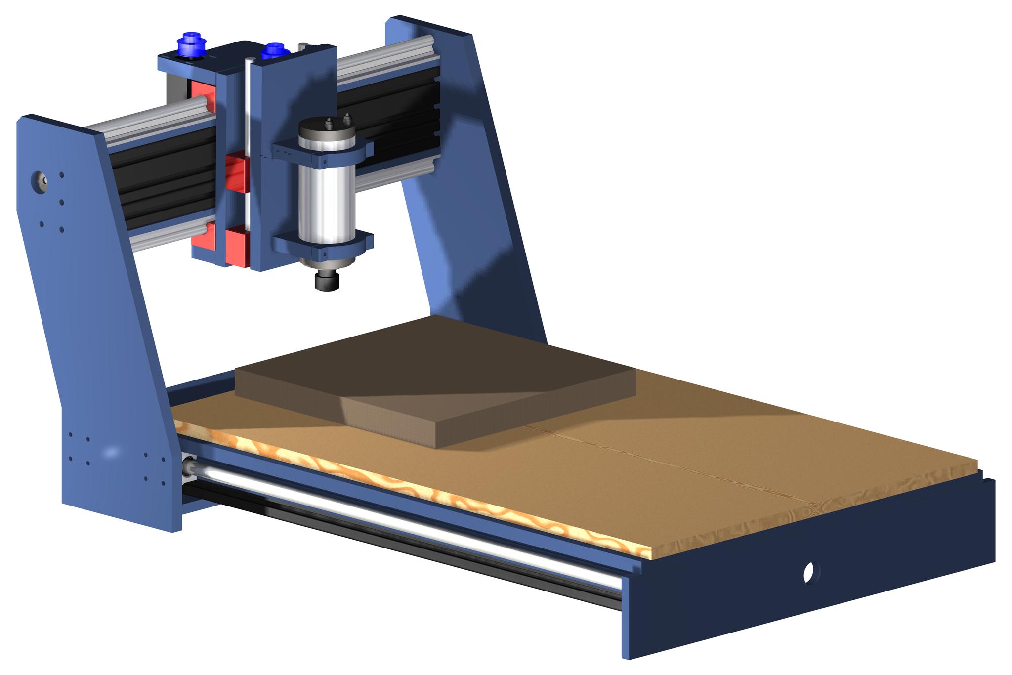 Nice little wood cutting machine. Don't forget the energy chains. You might just fit one under the X rail on a shelf bolted to the extrusion.