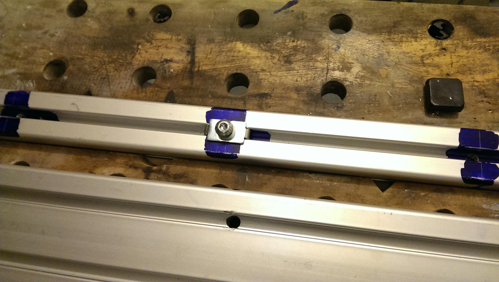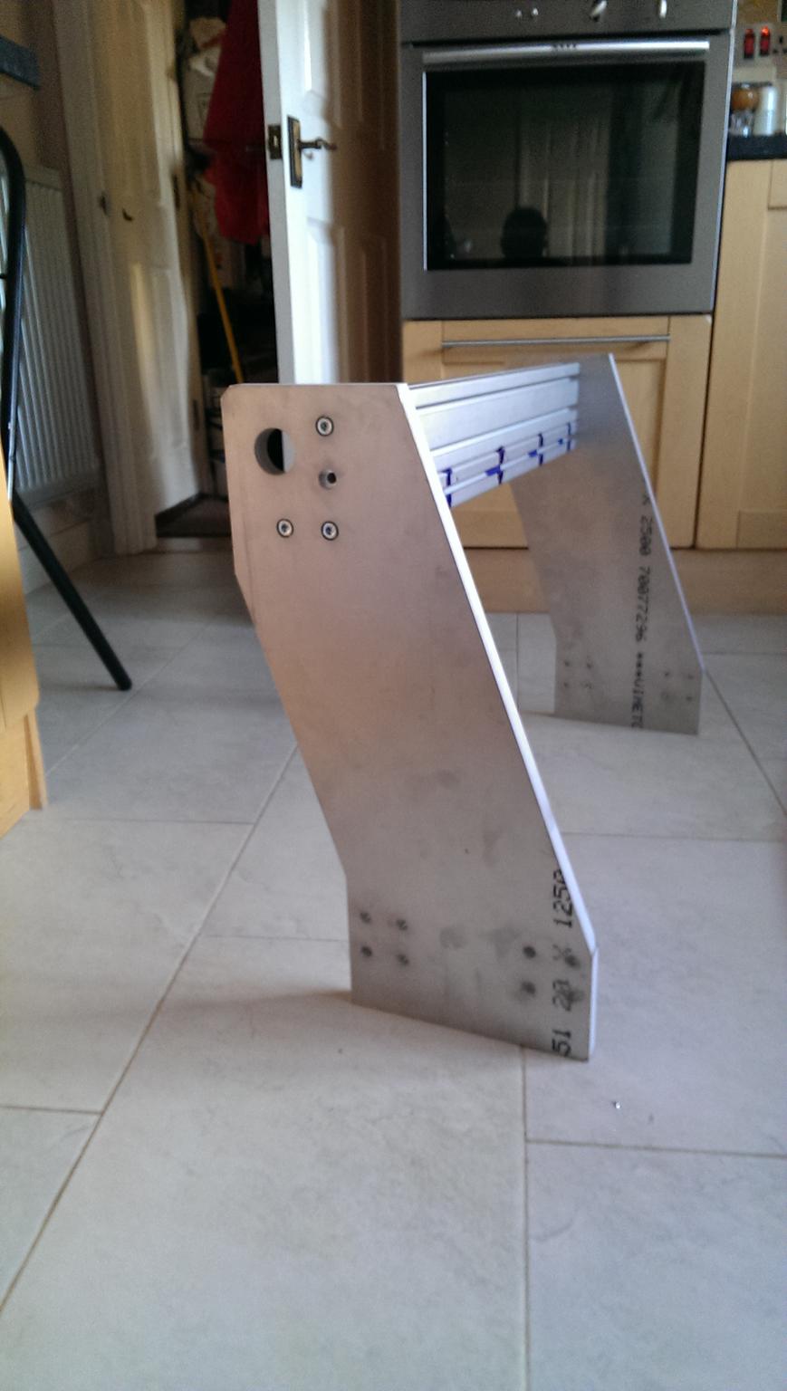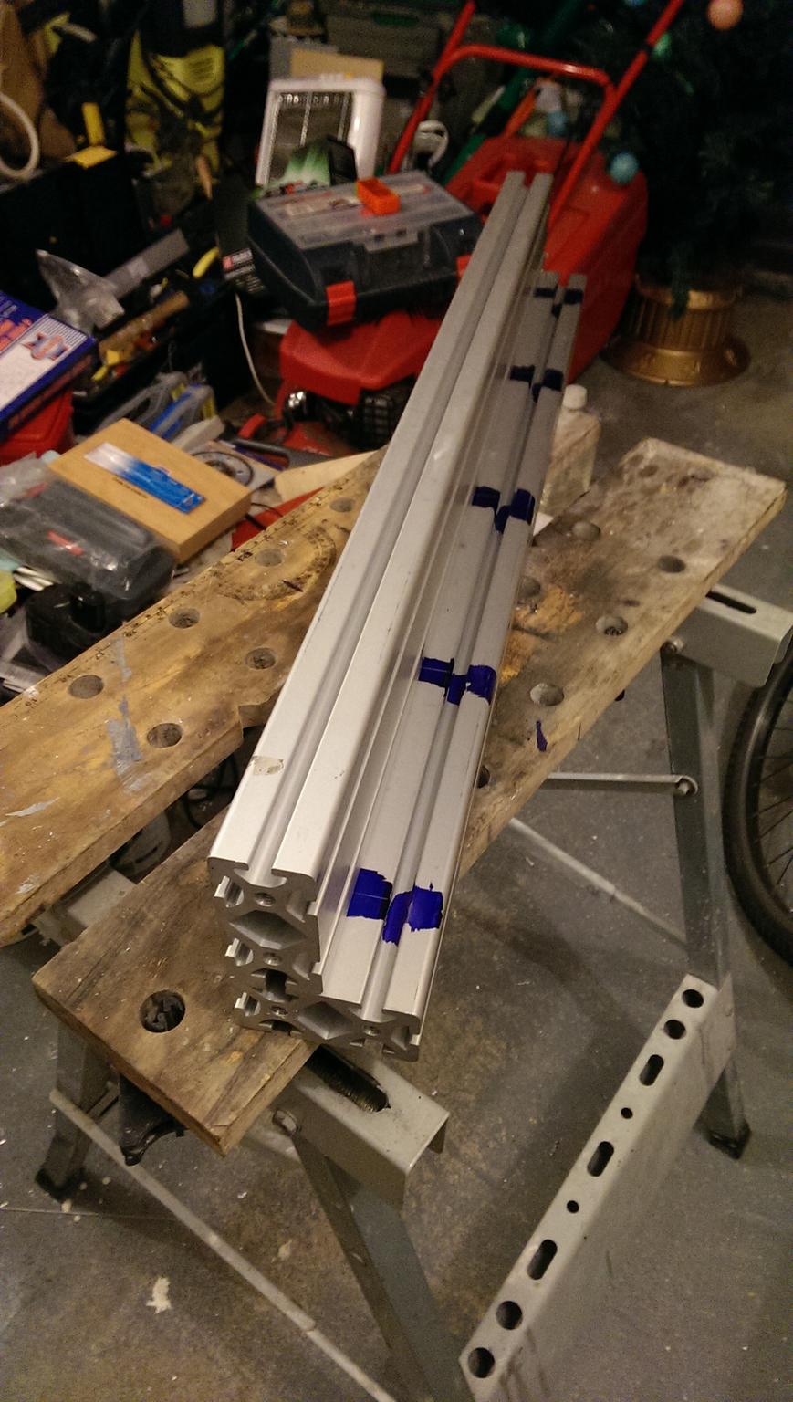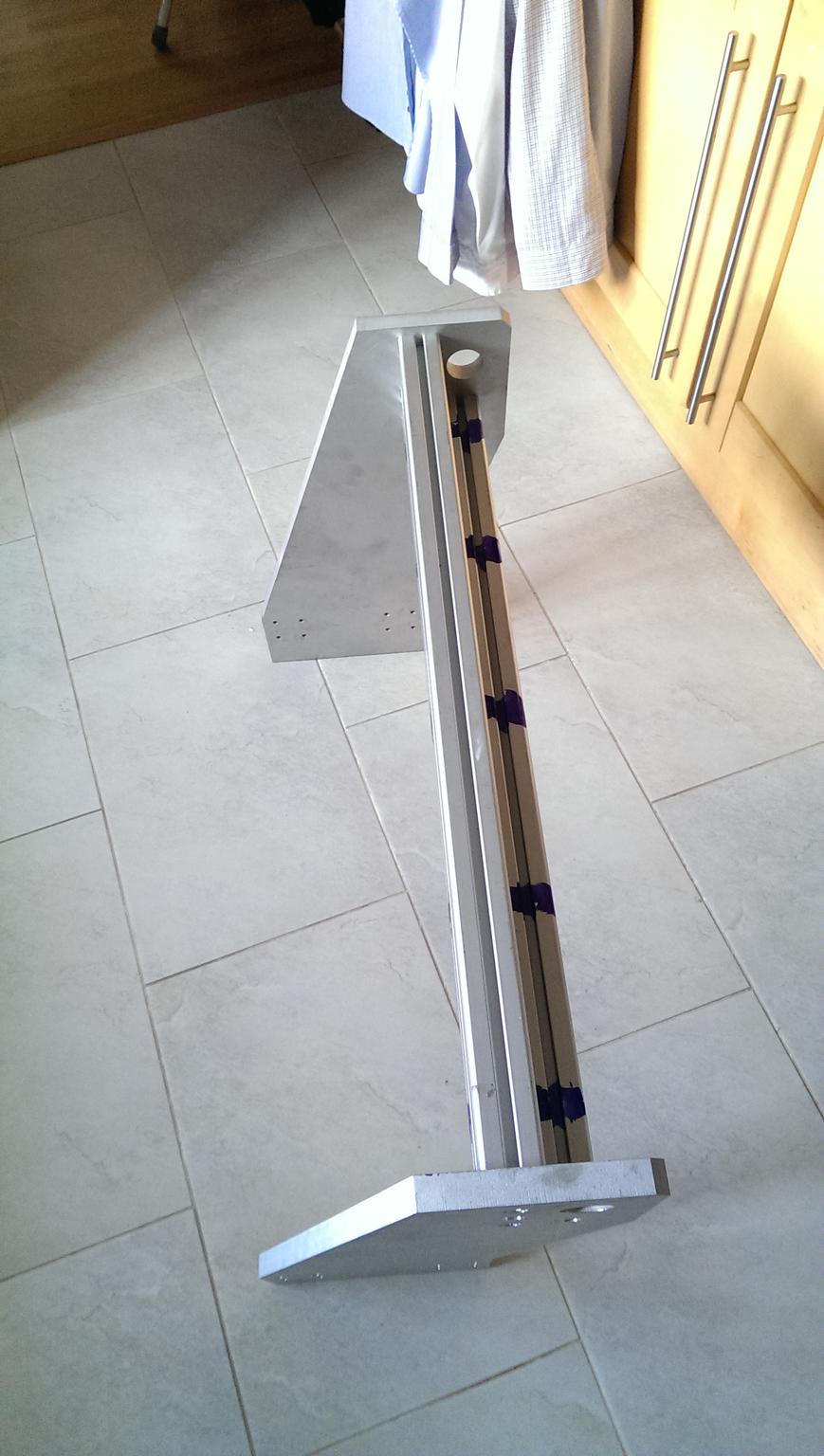 Sorry to be so tardy with postings and updates but I have been working on this. One of the things you discover when building a CNC from extrustions is the amount of drilling and thread tapping you have to do! Thanks to my neighbour who is a retired tool maker, he advised that I use spiral taps and these are brilliant when used in an electric drill! My top tip of the day! Attached are some photos of progress. You can see how the L-shaped Y axis inspired by Jazz was done. I have recently completed the drilling of the "thickner plates" which are used to mount the round supported rails because the material in the extrusions is too thin to directly mount the rails. Also I now need to clear out my garage so that I have space to assemble and check the machine!