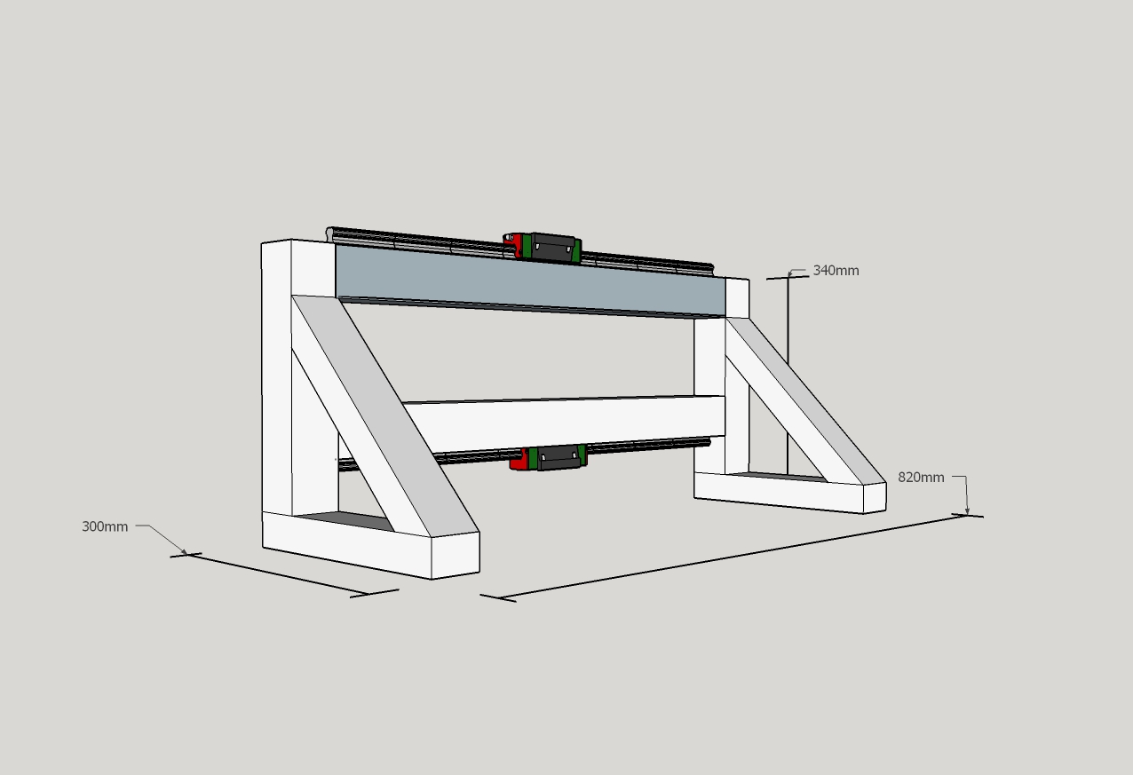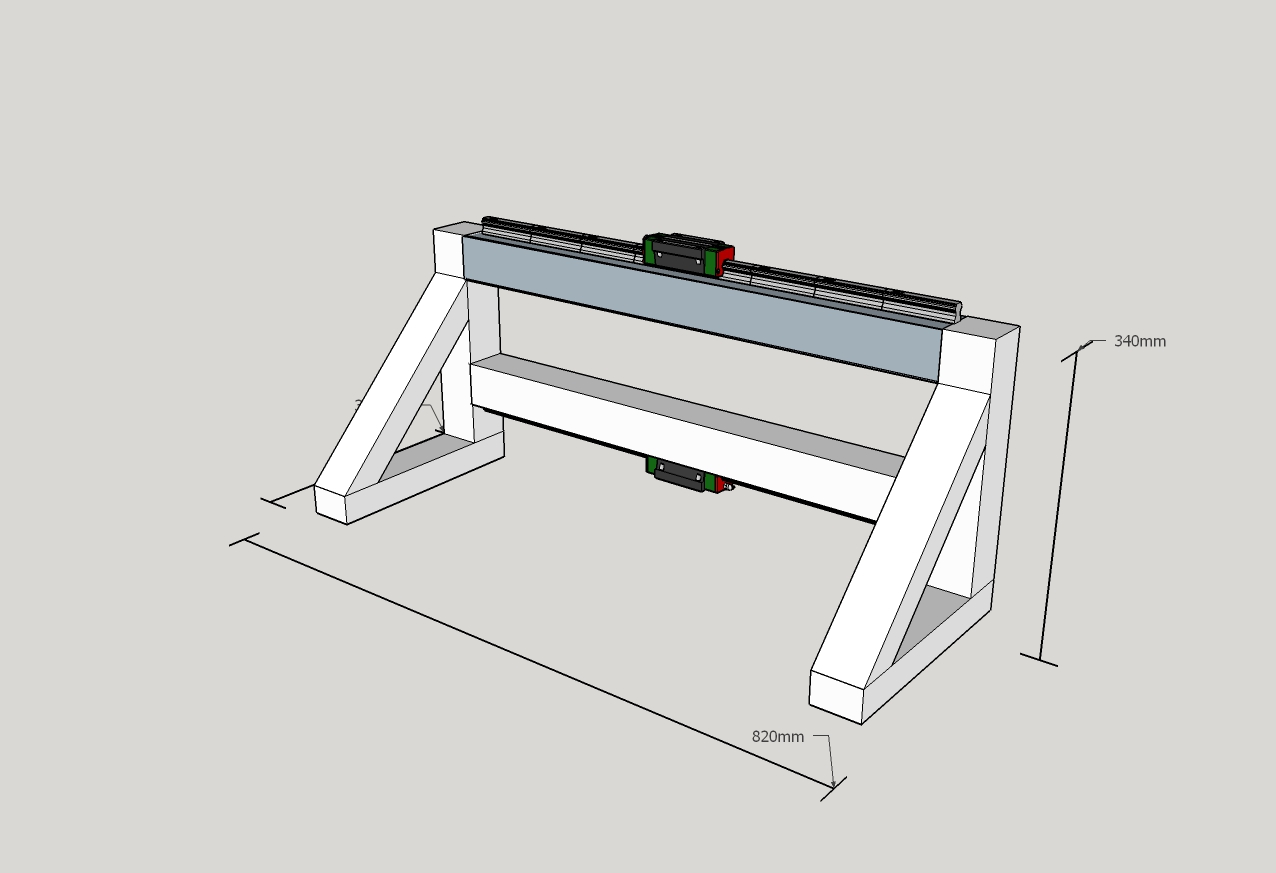 I haven't ordered anything yet still messing about on sketchup lol.But I will take you and Jazzcnc advise and get the Hiwin type.Heres my first Attempt at a gantry It took me five hours to do this on sketchup I don't know what I was doing but I kept deleting parts off the sketch.