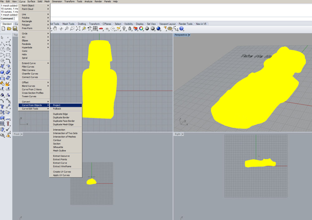 Now select the stl object so it turns yellow and select 'Project' from the menu;