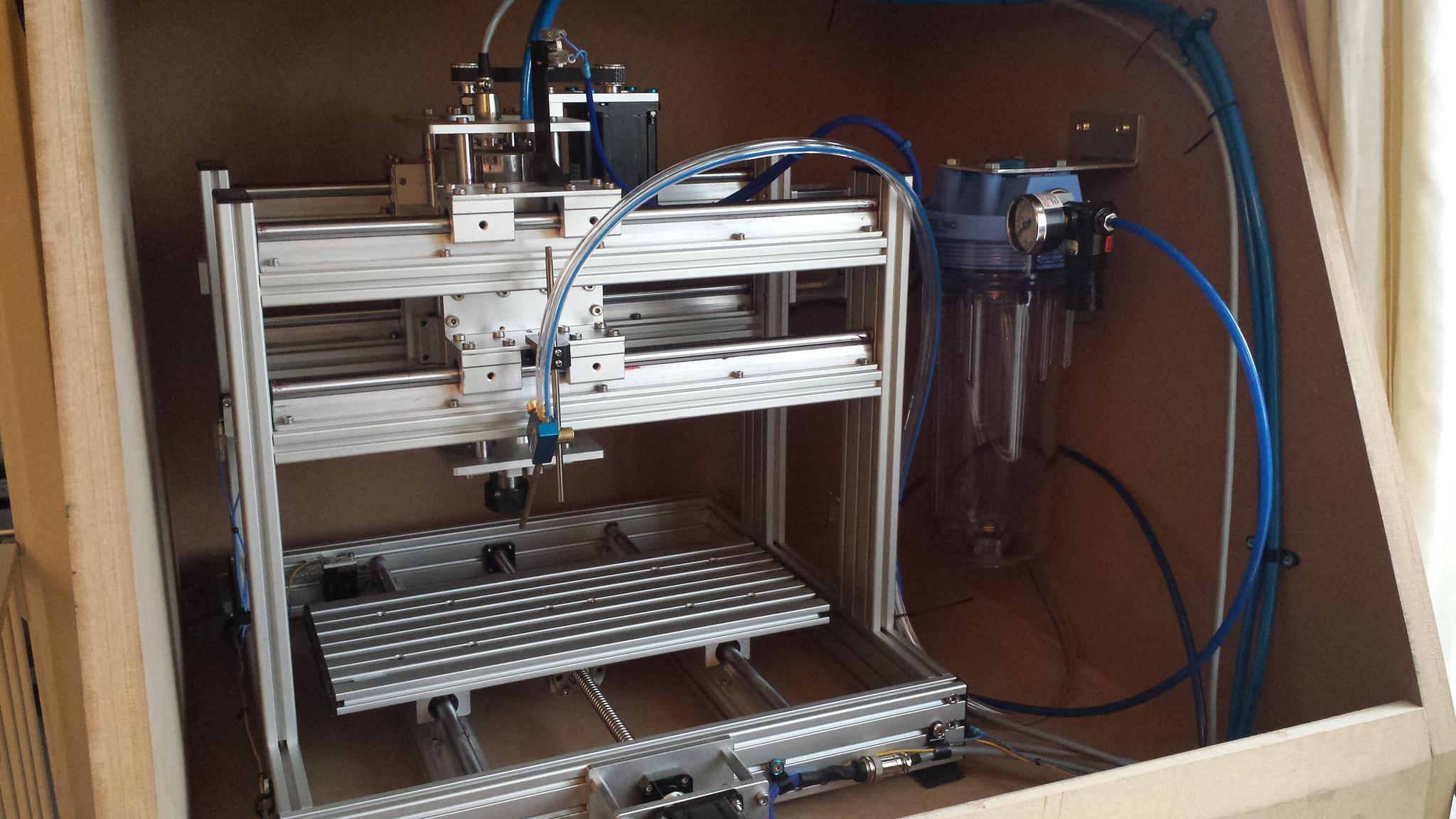 I'm still a small way off from the finish line but I'm starting to see the light at the end of the tunnel. I still need to pad the inside out with some acoustic foam mount the door up, some lighting seal the interior and find a low profile clamp for when I'm working on smaller parts ....... oh and slap all the electronics in a proper enclosure.