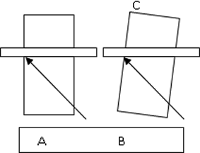 When I said the bed was not square, I meant the bed not being square in relation to the drill bit, the gantry, as in illustration B, (exaggerated)