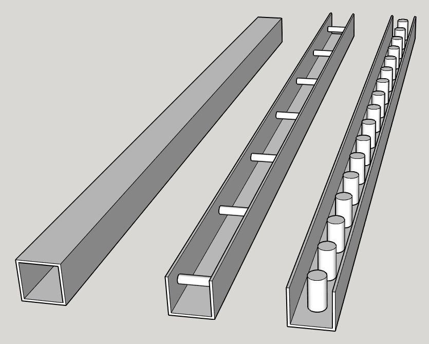 Finally, I have toying around with ideas for my rail beams, any thoughts on these 3 ideas?