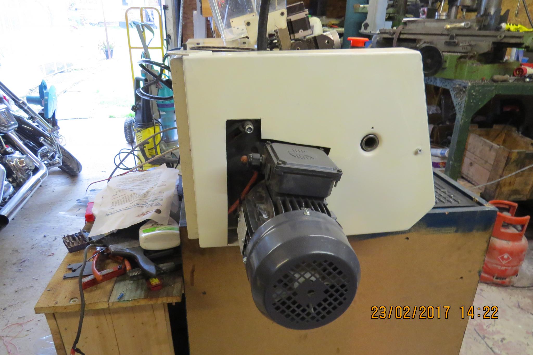That was a long time ago . I replaced the motor with a flange mounted 3 phase 1.5 kw motor mounted on the rear of the cabinet. I then fitted the VFD inside the cabinet. The motor drove only one pulley and had enough power to do all speeds necessary. I have since done 4 like this and all sold no problem .Works much better than Boxford's effort.