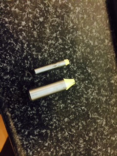 Hi Matt, below are just two examples of the same problem you have. I even tried to go with 6mm with a 1/2" shank and that broke just as easy and trust me these on the photo were not the only two I broke:-) I even managed to break a quite expensive WP 1/4" x 1/2 shank cutter, it lasted a longer but not much. Unless I ran these 6mm straight flute cutters with air blast, at low feed and shallow depth of cut they broke long before they get remotely blunt. They break while slotting straight or curved sections and never broke during a plunge or ramp-in. If I want to break a brand new one within 10 seconds I just cut some of those dark brown HD fibre board at the feed/speed/DOC you mentioned above. Gmmf, they die so gracefully, no real nasty sounds, nothing gets flung across the workshop, the spindle just leaves half the cutter behind in the slot... :-)