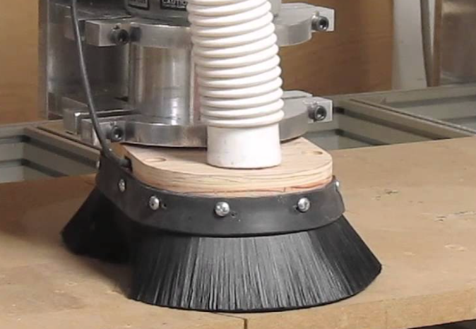 The downside to the PVC Strip skirt is that it does not drop down into the channels that are being cut (whereas a brush skirt might) so it allows the chips to be fired down those channels like a bullet from a gun and escape the dust foot, they then bounce all over the place.