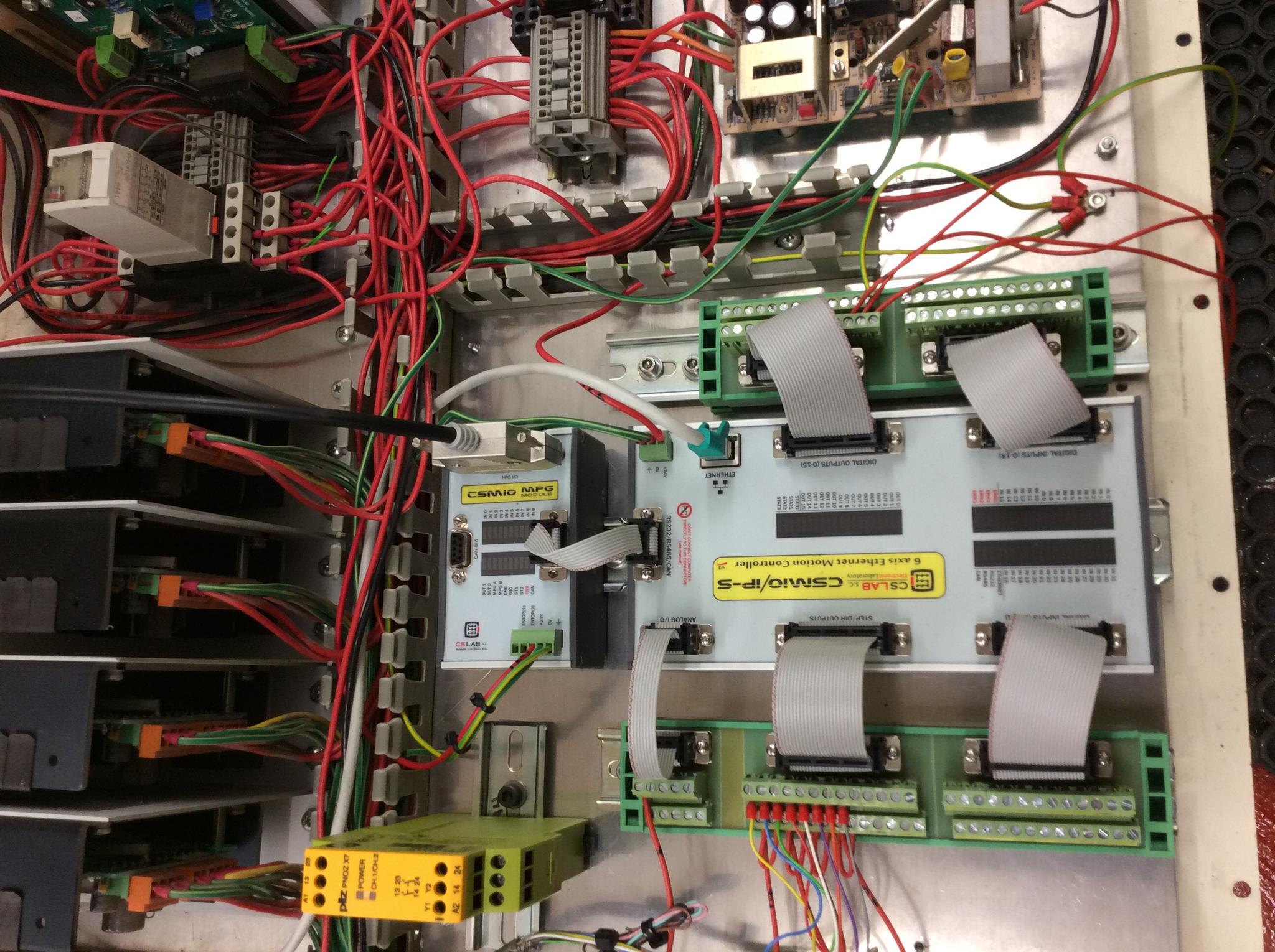 After a short test everything seems ok, all motors running, unfortunately the B-Axis can only turn unidirectional in 45° increments. But I have a snailgearbox. So if I change the clampingstar for a pneumatic discbrake it should be possible to make continous rotation with any (in the driver given resolution) desired increment.