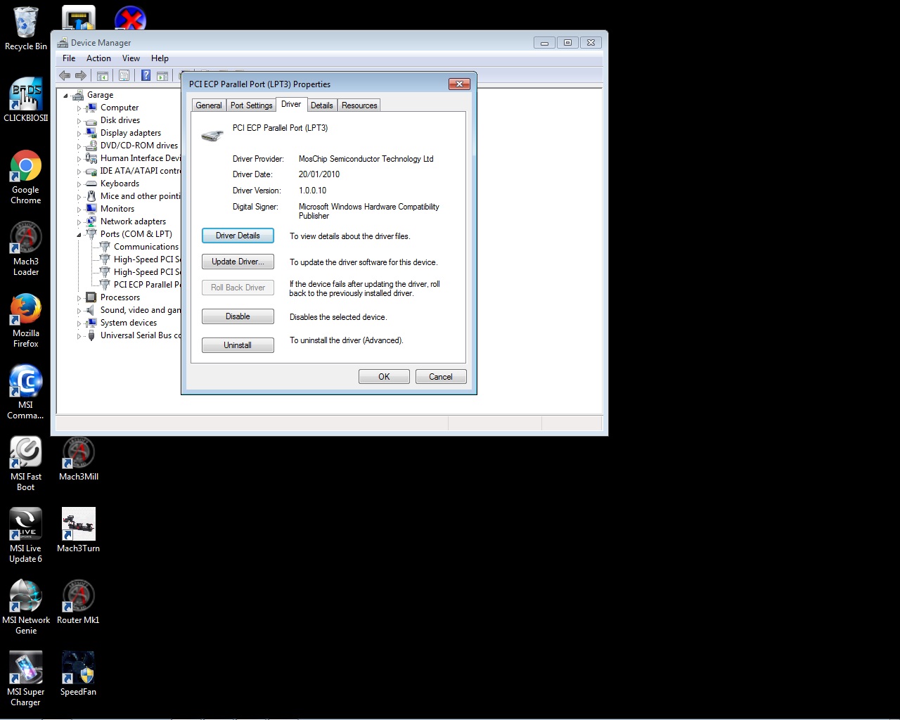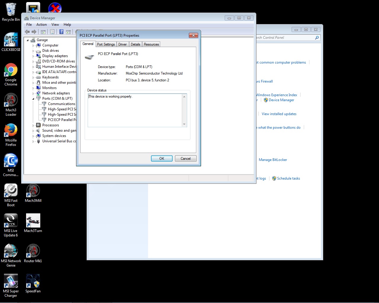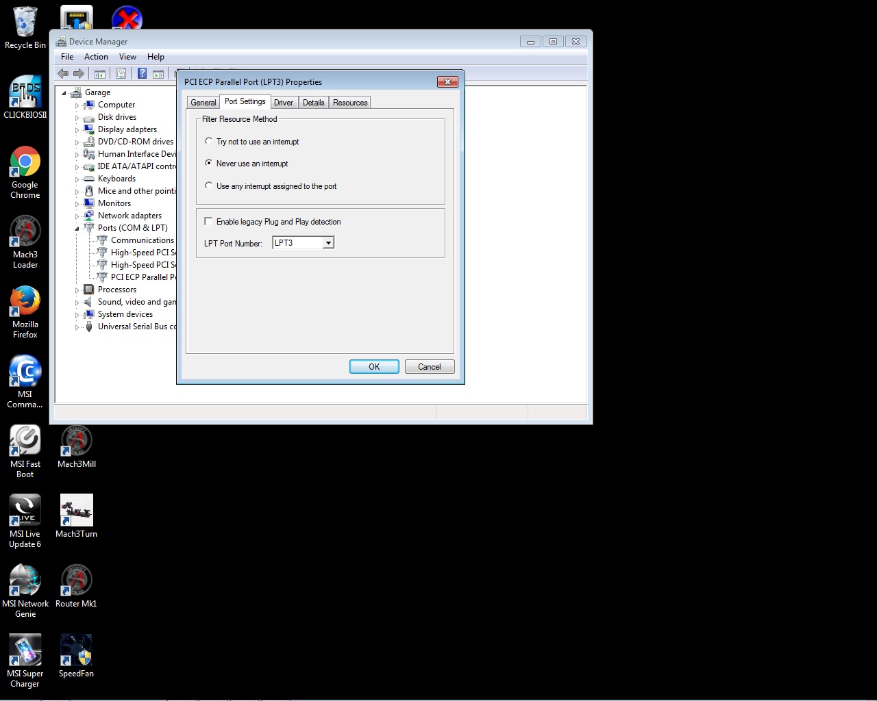 Just for a bit more background - what PCI adapter card are you using? I have one in my CNC PC that works fine and I'm happy to check settings if it's the same or very similar one.