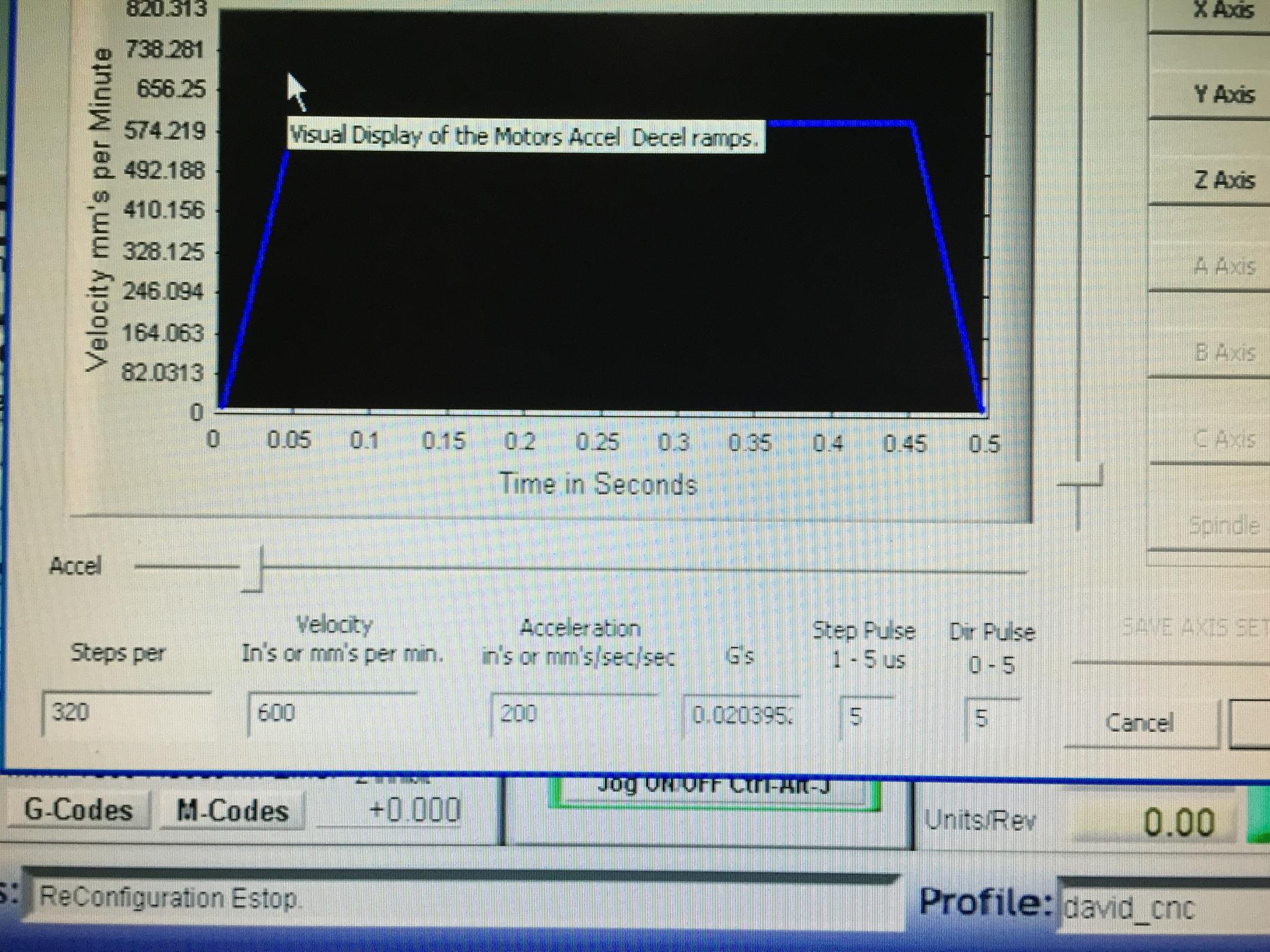 Also the Steps per setting how did you come to the figure of 320.? . . . . And What are Micro steps set to on your drives.?