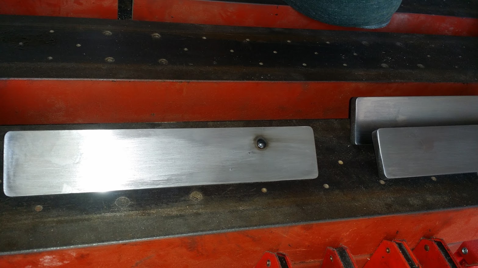 the plate that goes on the bracket has 2 screws each, one side only, at the other side i sanded the weld and welded again until pits disappeared. not to speak of that even threaded the hole before welding, as i want all to be very precise