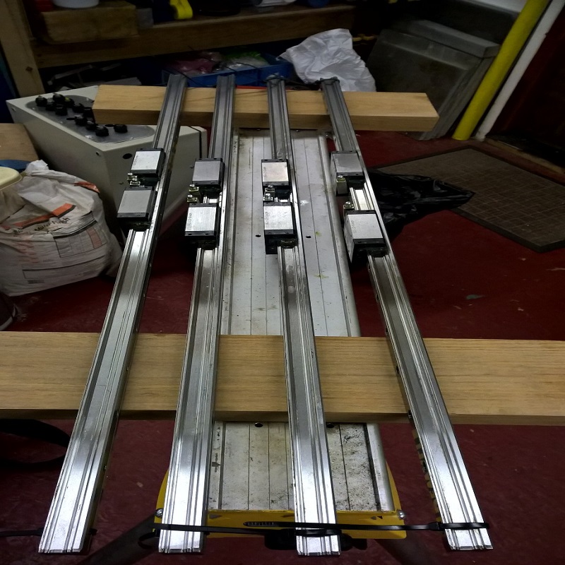 I have four of these linear rails with two bearing blocks. The rails are 1000mm long size 25 made by Star Germany. The bearing blocks are Bosch/Rexroth with 0.08C preload.