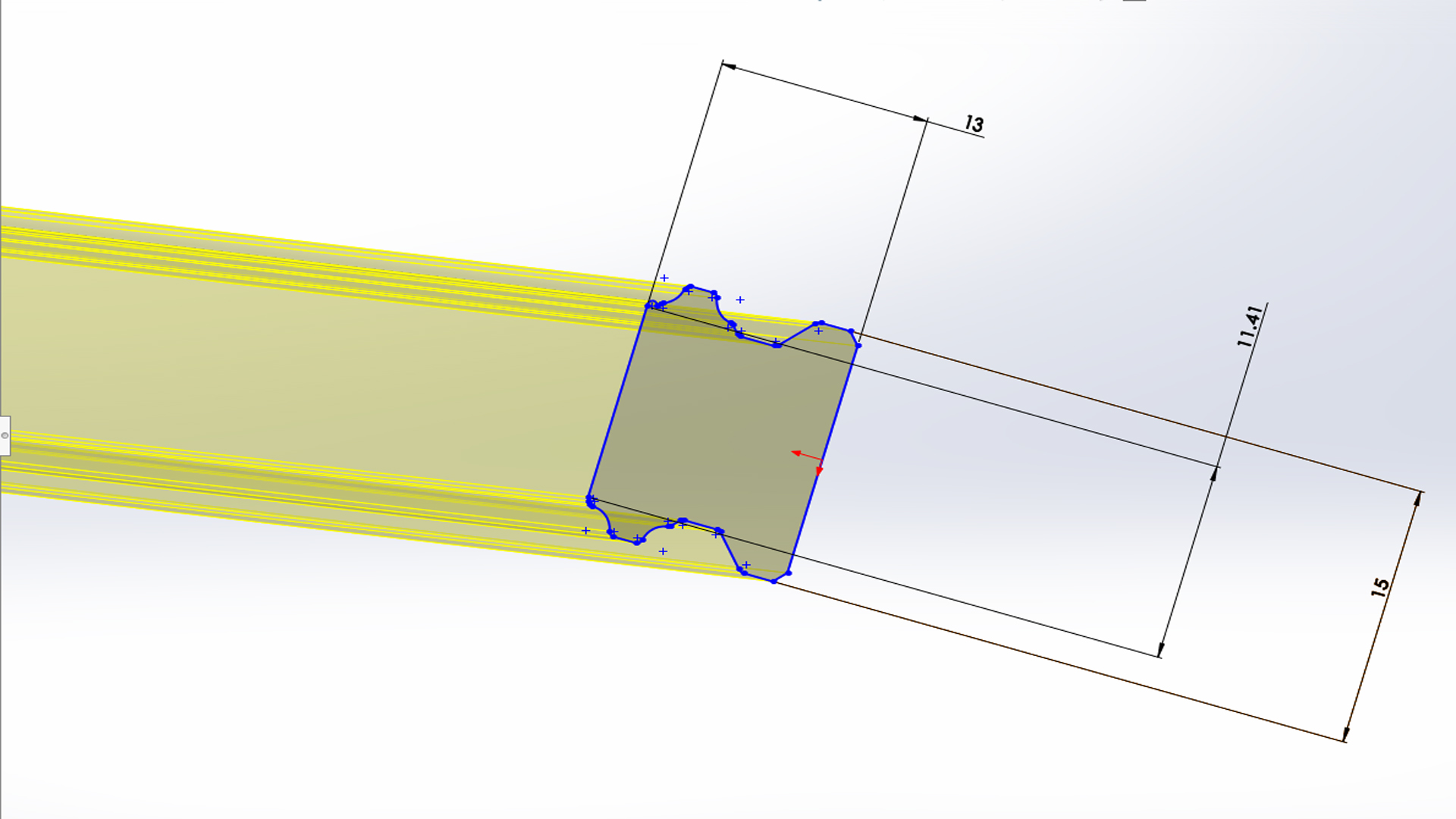 How do i edit this drawing so i can change the dimensions of an already made linear rail? basically i want to change it from a 15mm rail to a 20mm ect but when i change the dimensions it messes the drawing up shown in pic below.