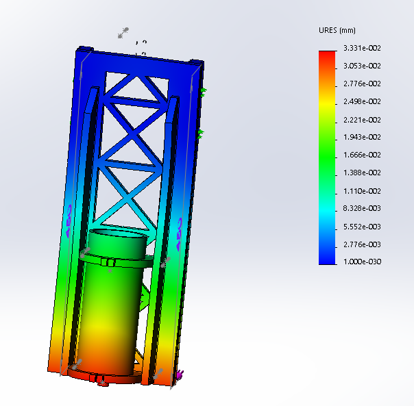 The weak link where the forces in the Y axsis, this was fixed with some side bracing