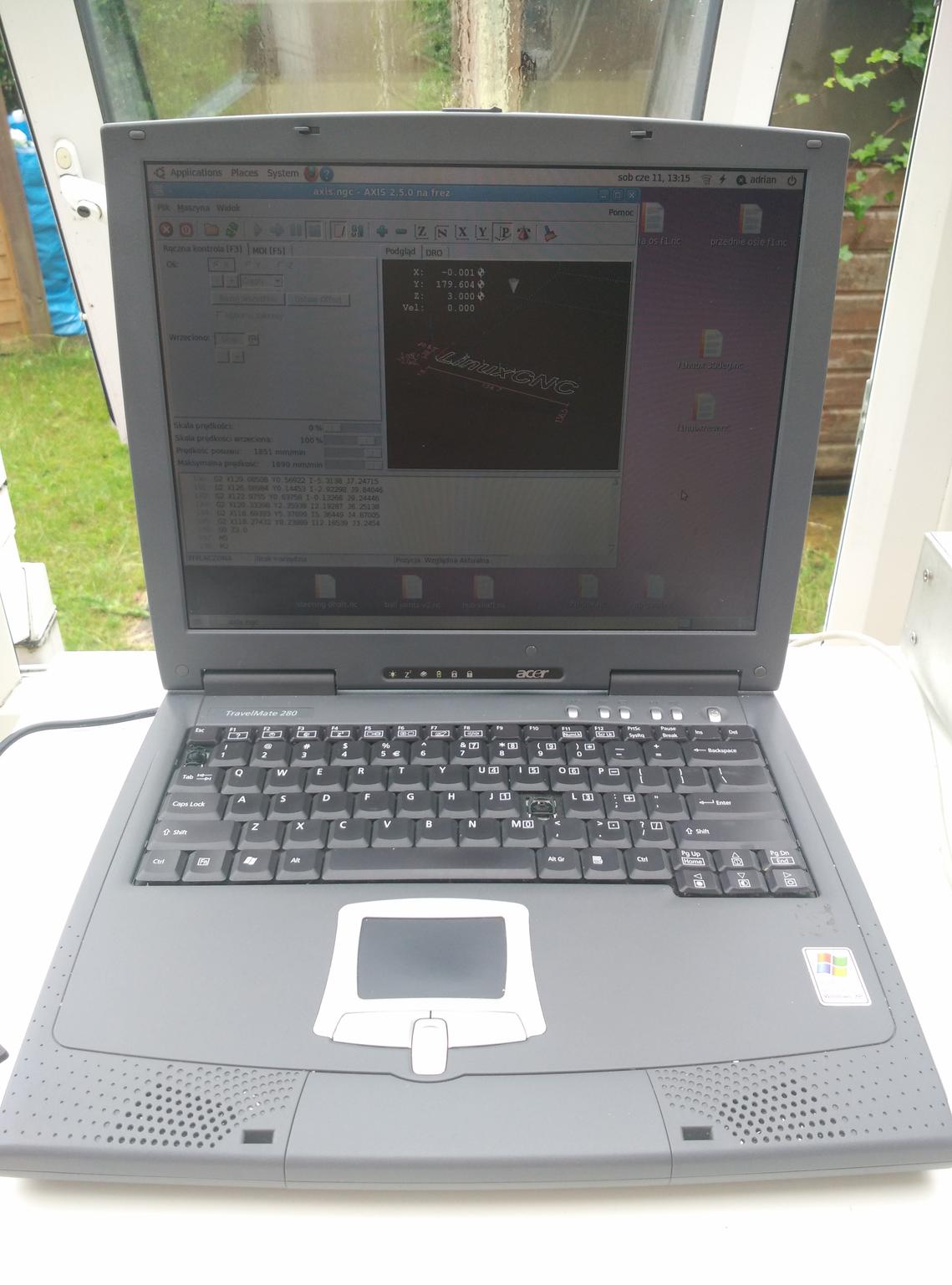 - laptop Acer TravelMate 280 with LINUXCNC software.