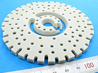 So to achieve very tight tolerances, fully sintered AlN is grounded with diamond cutting tools. In this process a very precise diamond coated tools are used. These tools abrade the material until the desired form is created.
