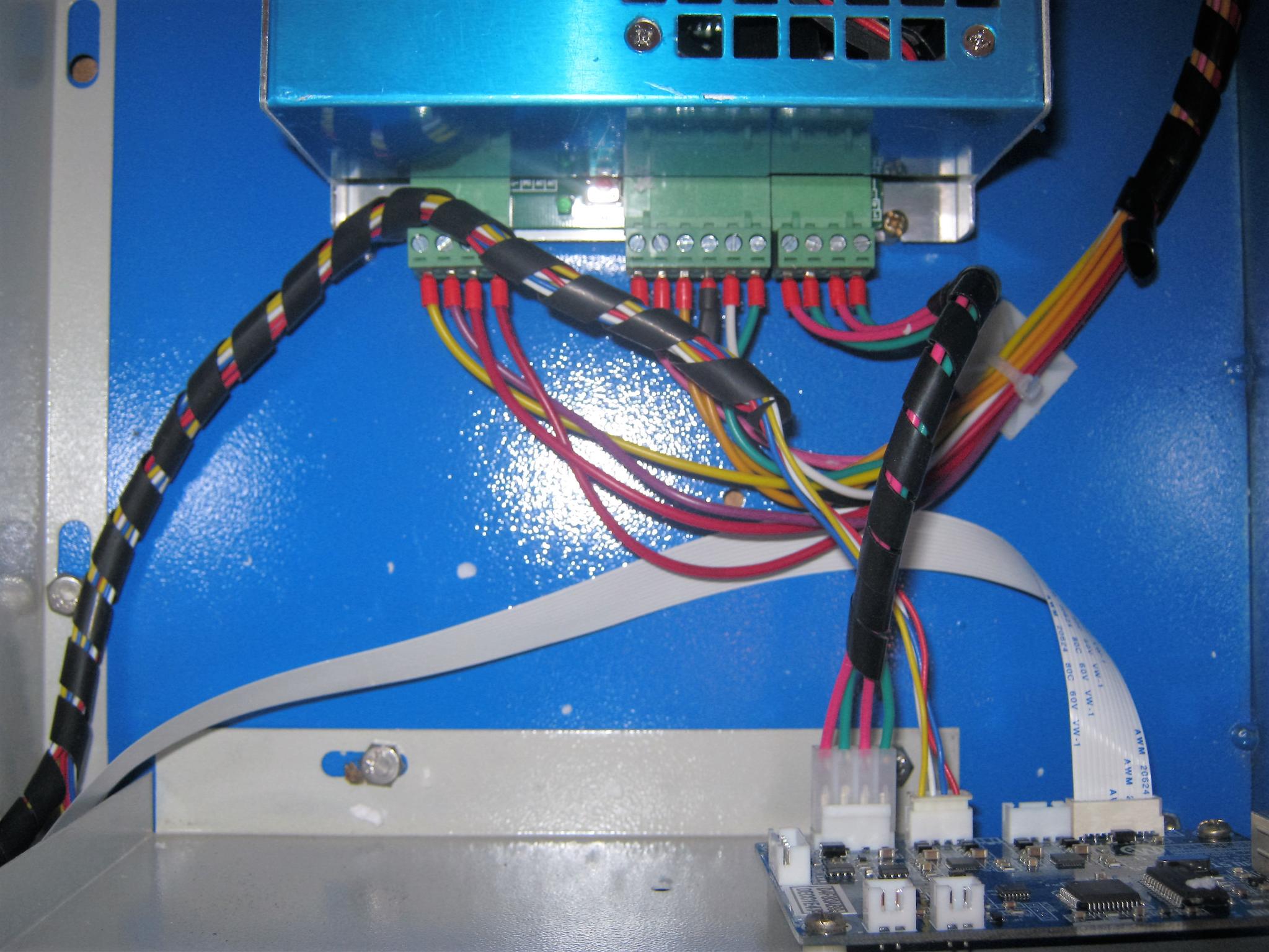 Ah, brings it all back to me. Just thinking of a couple of the mods I did - I removed the curly airline and replaced with soft silicon, encased in a minature energy chain bolted to the inside of the front panel - just to avoid it getting tangled in the X/Y axis - There might be better ways to do this. Also, I 3d-printed a bracket to hold a single-axis red laser-line diode, centred on the final mirror, so that you get X/Y centre lines on the material under the mirror (you can't use a X/Ycross-hair diode, like I tried first, because the projected beam position is affected by the height of the material being cut)