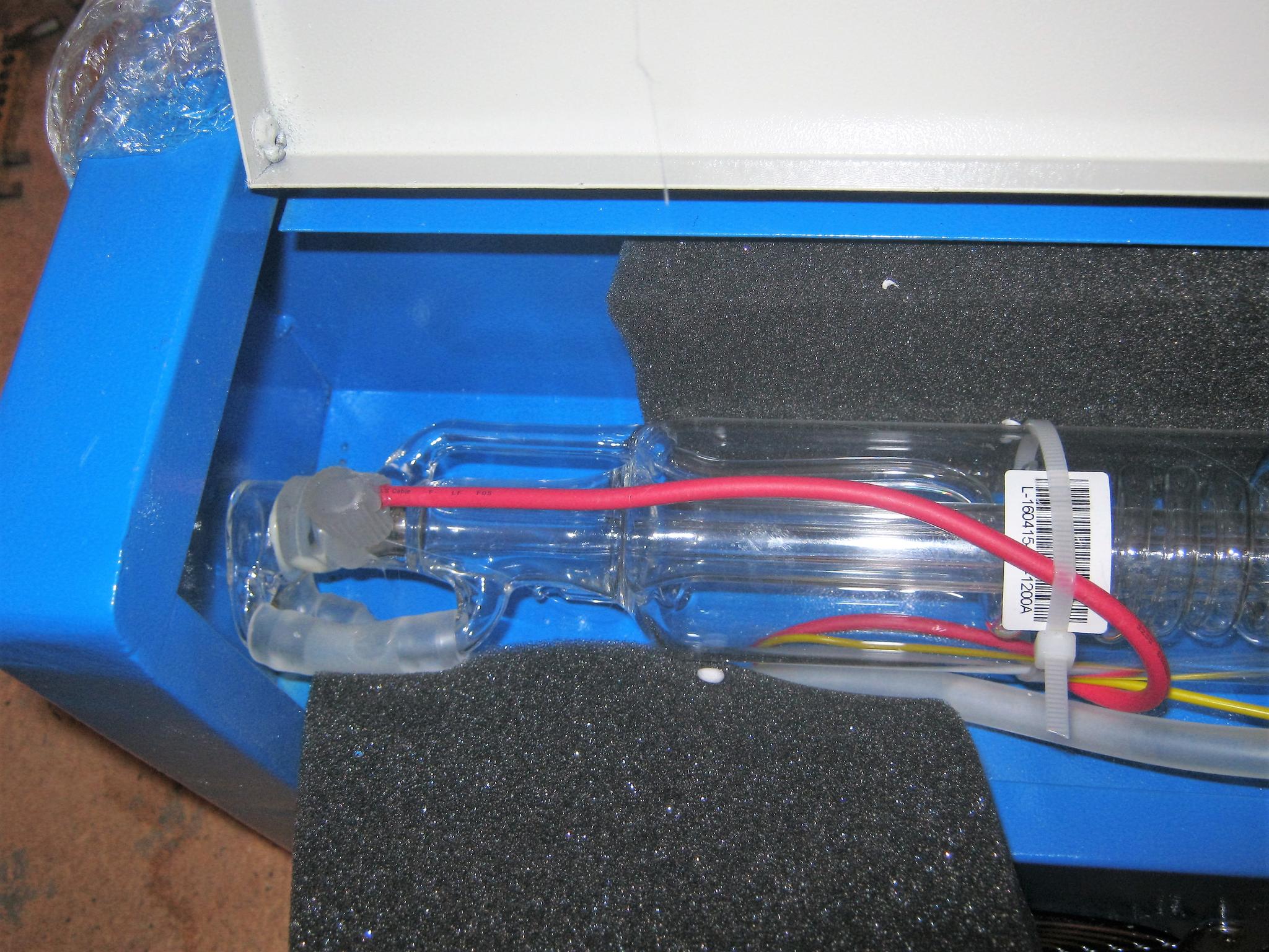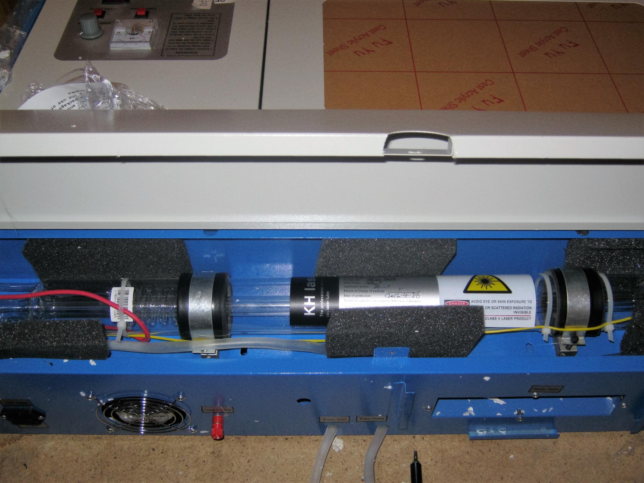 Check the whole machine over carefully. There could well be far worse things than that needing attention. Mine had the HT lead to the laser (20kV) flapping around against the metal case. That's was also a few missing screws. I blew through the coolant tube to check it wasn't blocked and got a mouth full of water. It gave me some nasty disease from some parasite found in polluted Chinese rivers.