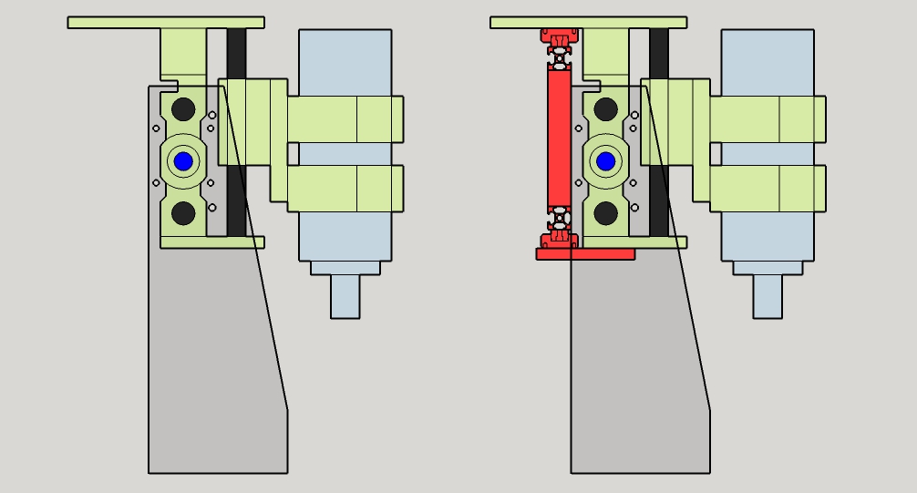 Okay, Long term- I will probably rebuild the Z axis and most of the gantry. Problem is, I cant really mill aluminium at the moment. too much flex in x-axis. Heres what im thinking of doing to get it a bit more rigid.