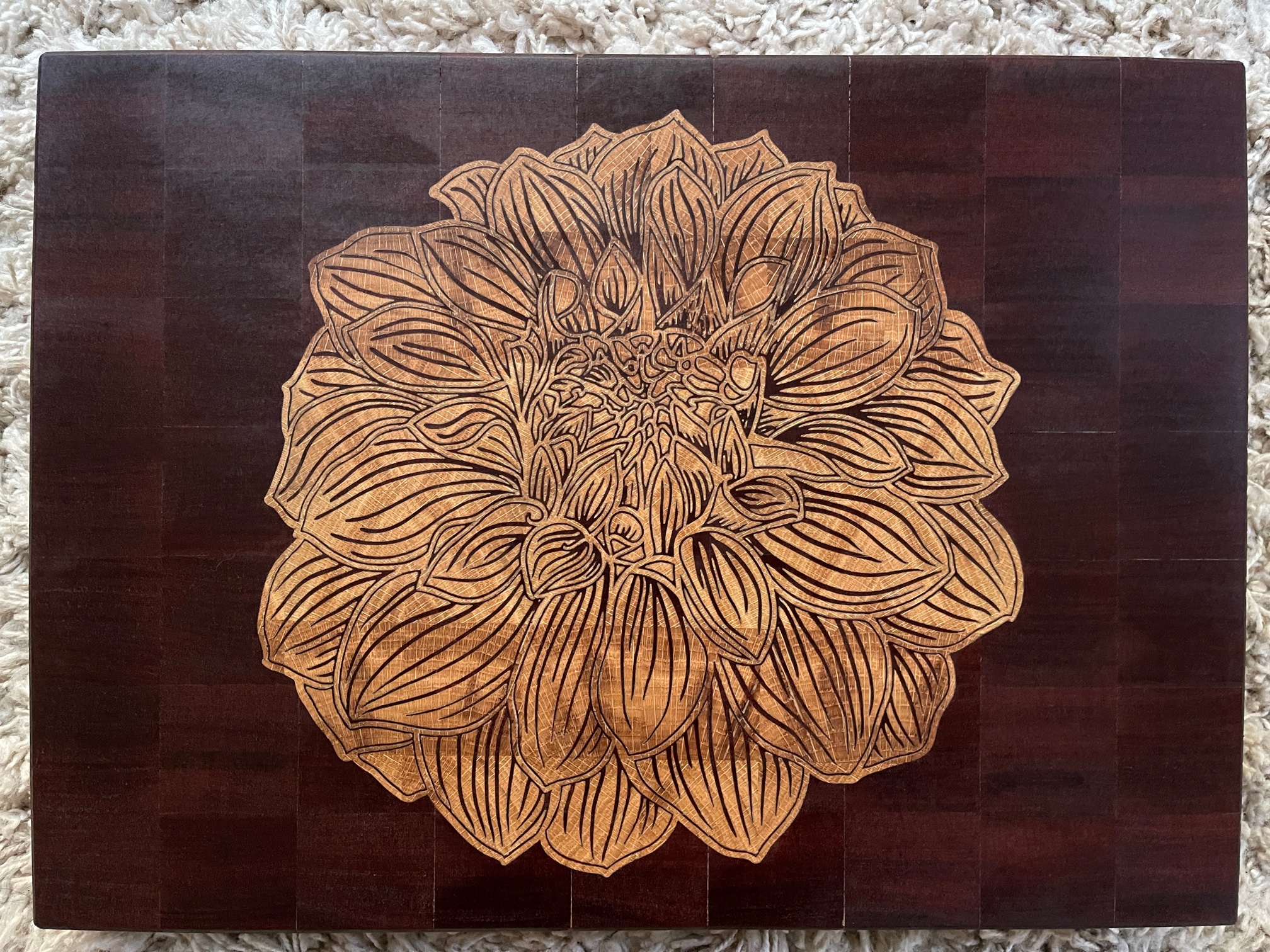 So I’ve had to get a proper fix and bang out another inlayed end grain chopping board. Really need to punt these out. I’ve got more boards than things to chop! Here’s a pic of the finished article and also a link to a video of me making it. If you’re bored and have 13minutes to spare, check it out. :eagerness: