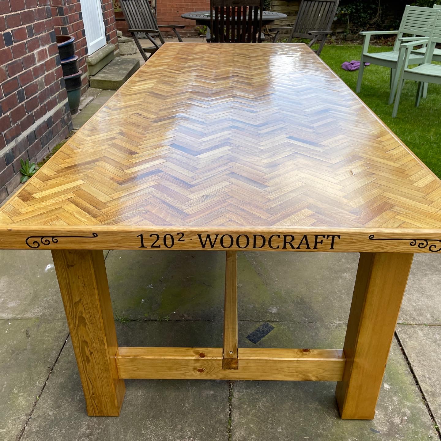 I’m back! Been off my CNC for a week or so whilst working and knocking up a garden table (home project) ..... but I did manage to squeeze a little bit of CNC into that. Cheeky little self promotion on the ends!! Might as well post a piccie seeing as it did get a little bit of CNC treatment.....