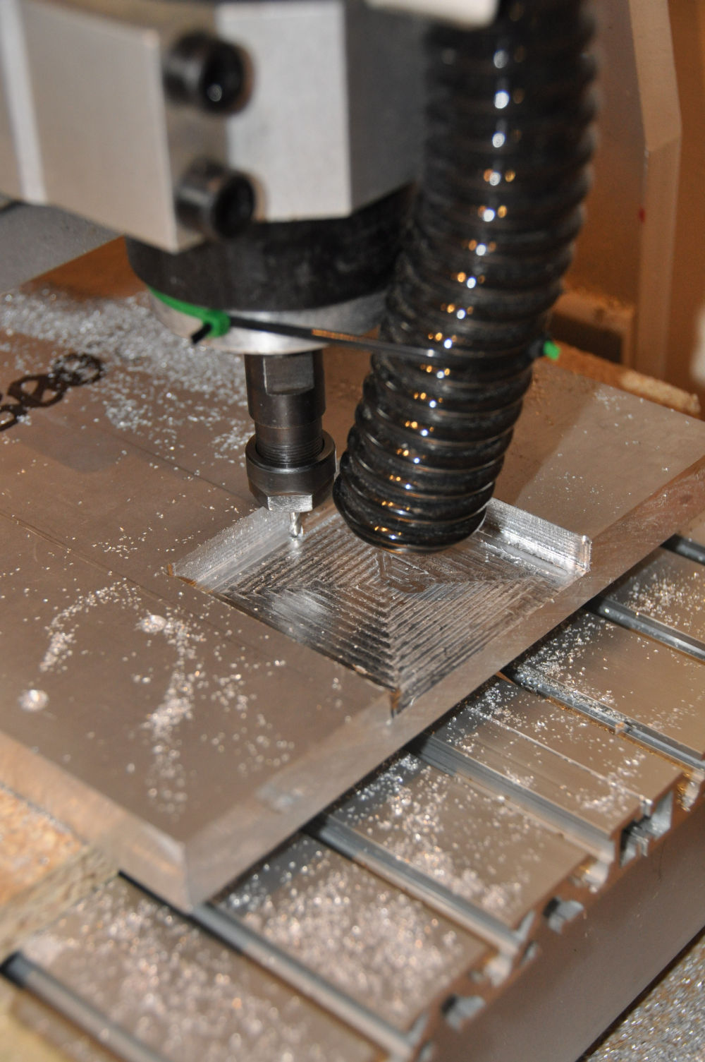 I thought I'd share a couple pictures of what my eBay CNC3040 was doing today. This was making a pocket in 6061-T6 (heat-treated and artificially aged) aluminium.