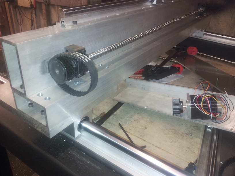 im not bothered what 'pitch' it is etc, so long as its a timing belt. once ive found one il buy pulleys to suite, then bolt my existing stepper drive pulley to the ballscrew pulley (ala jazz)