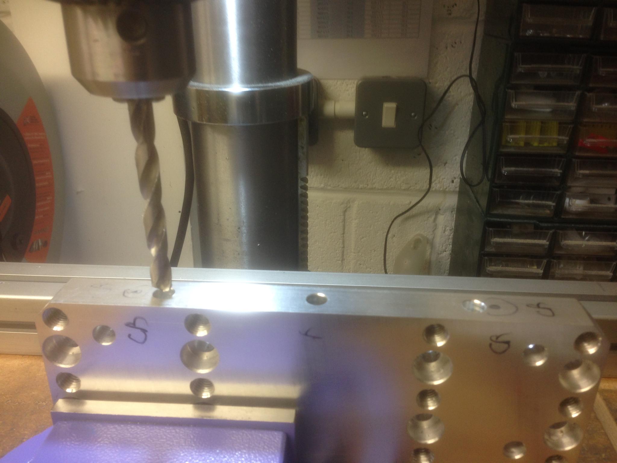 Then 6.8 mm holes machined (ready for M8 tap):