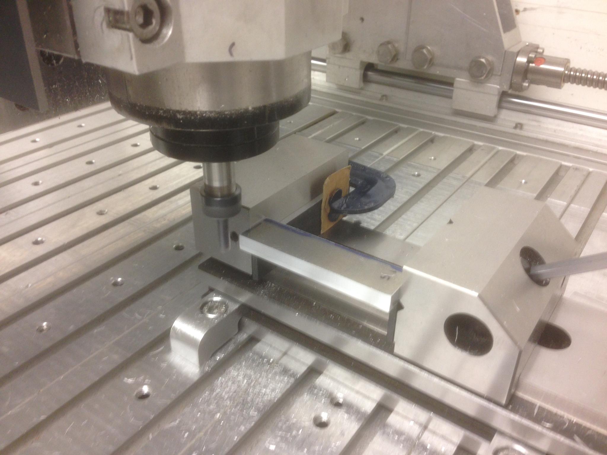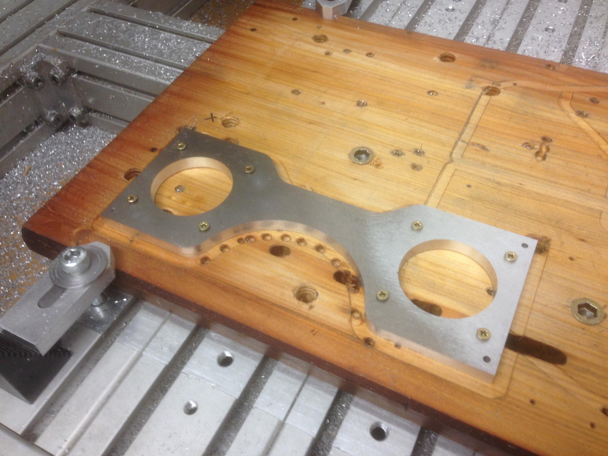 Last time I left you in suspense over the holes in the side of the bracing pieces. Here they are being machined: