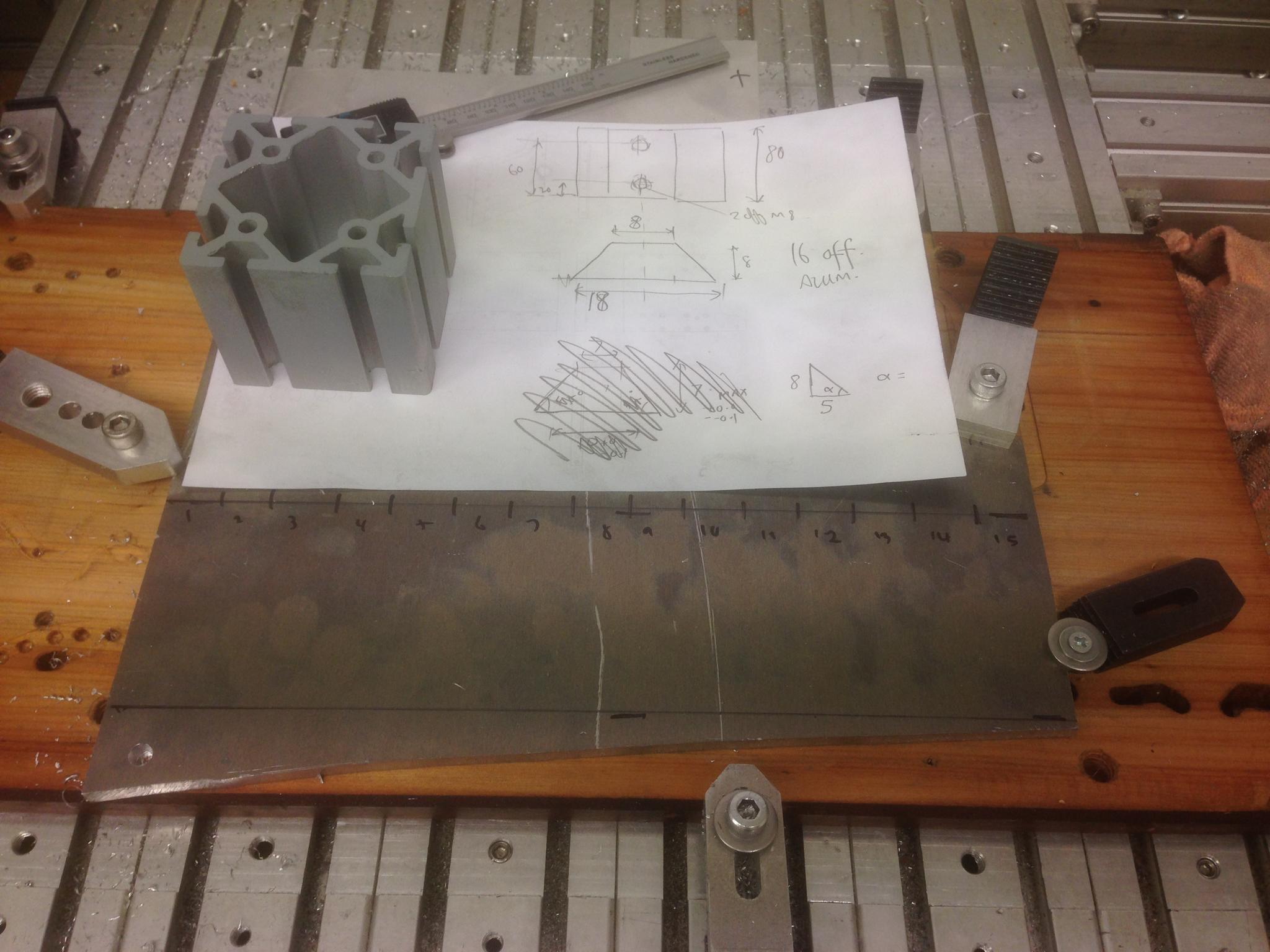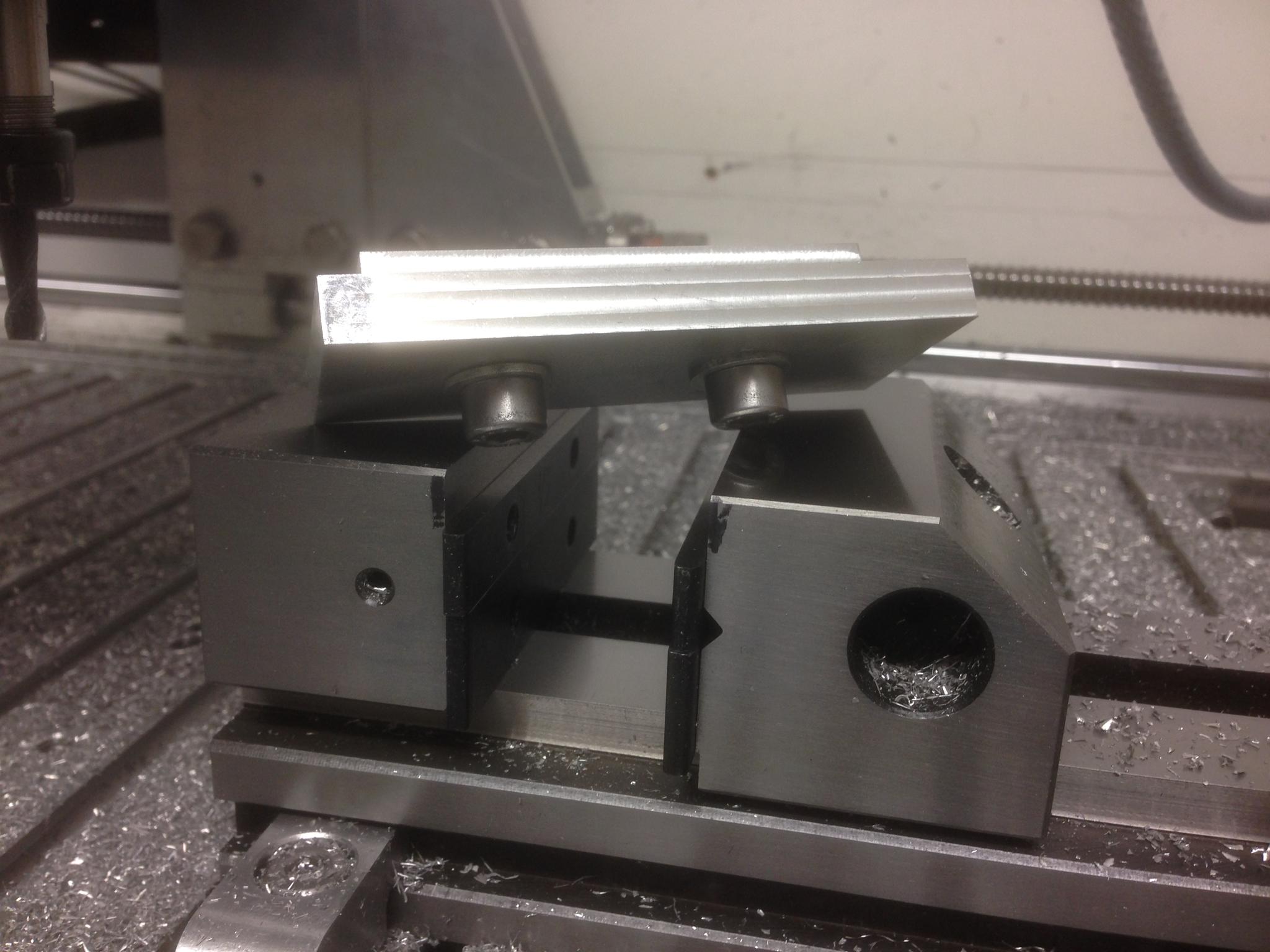 Now onto the angled sides. I made a fixture to hold the parts which had 2 datums for alignment: