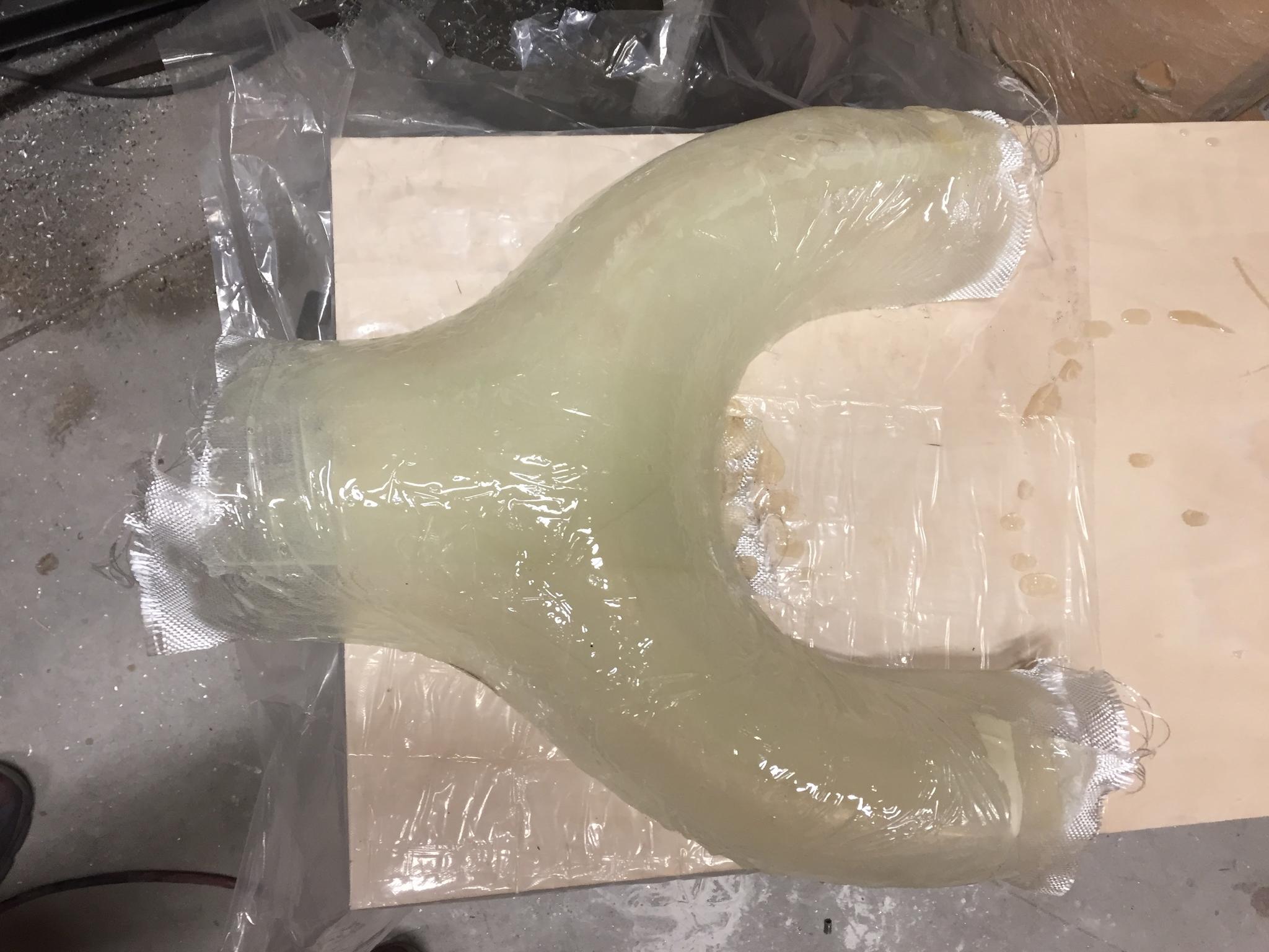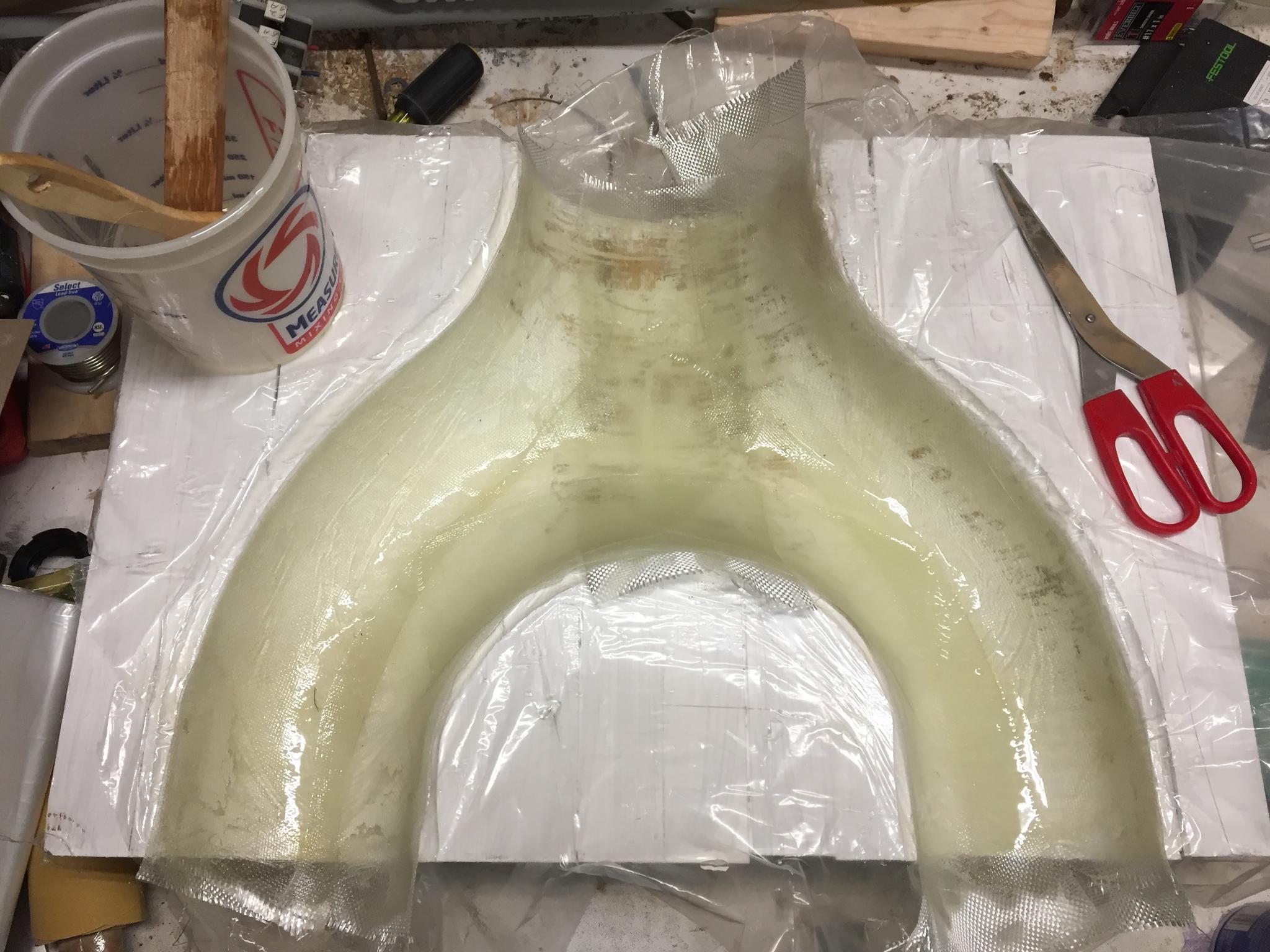 Made some progress on the dust collection adapter first picture is the first half out of the mold and the second is the second half laid up in the mold.