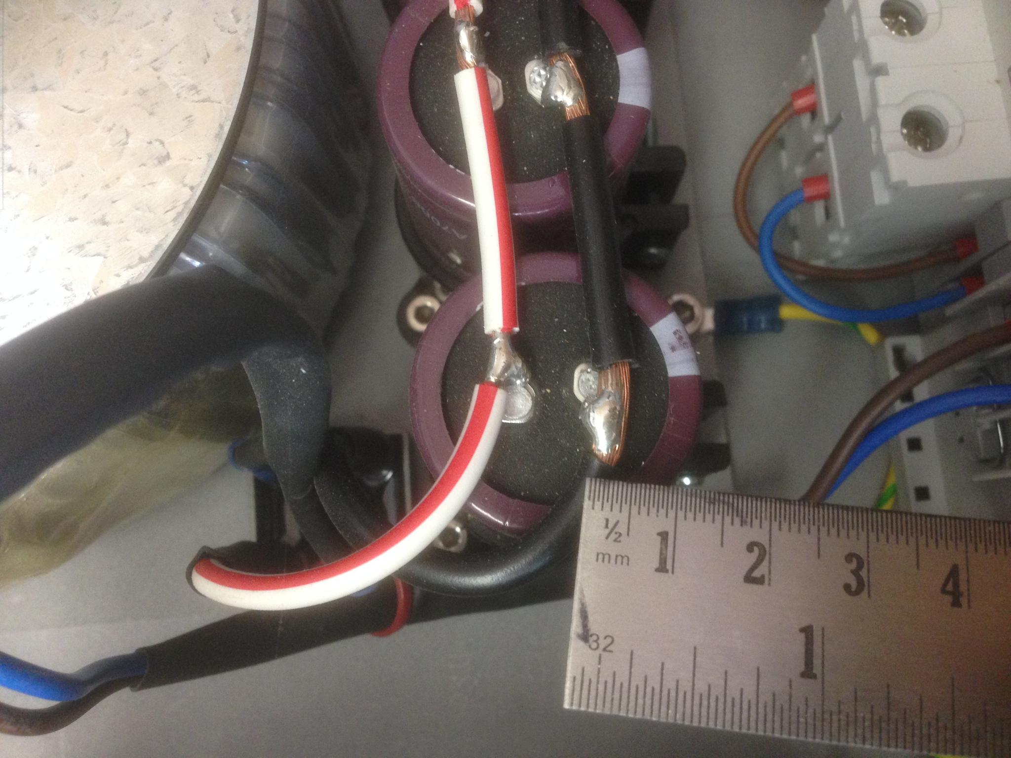 Power in top right via the D curve mcb which will be din mounted and dc out from the lower terminal block. I have wired a 10k resistor between the dc terminals to drain the caps once powered. Any comments before I turn it on?!