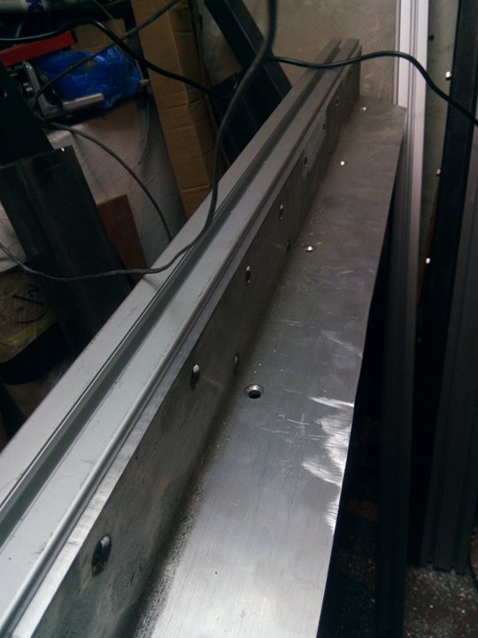 I use the end mill chamfering with sunk to prepare the holes,then screw the aluminium angle in place, the axis weight now 8.7 kilos.
