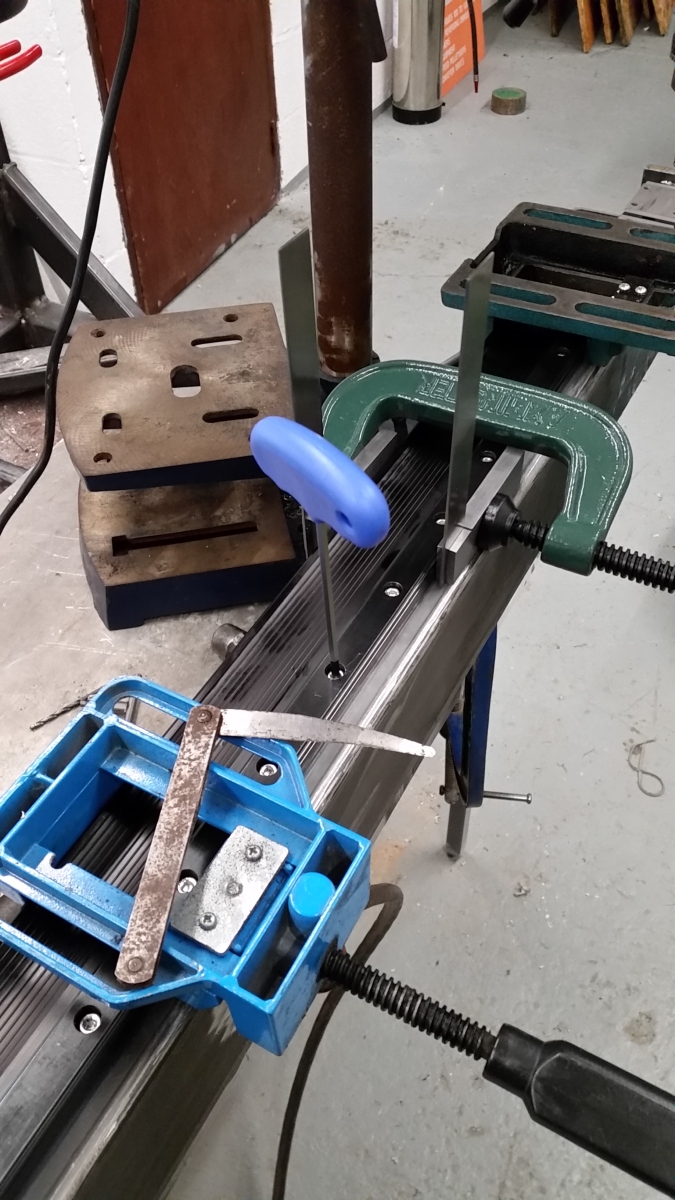 Second rail is squared up and drilled, tapped and bolted down. I can't notice any tight spits but as Jonathan said you've got to really get them out of line to notice any tight spots.