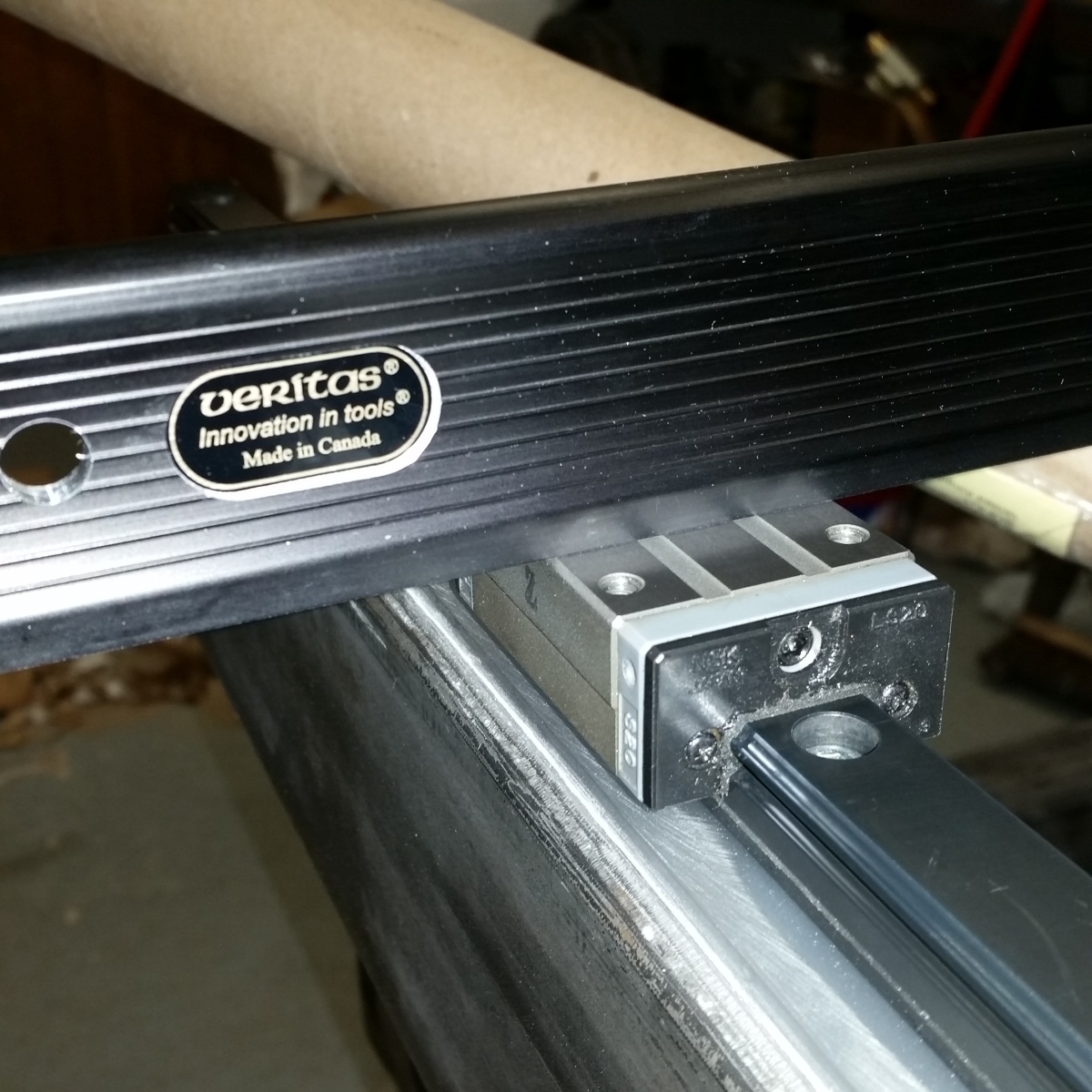 Set up a straight edge parallel to the master rail 300mm away and put a DTI on a carriage and moved it up and down the rail. There's about 0.25mm of twist/dip mostly near the rear of the machine.