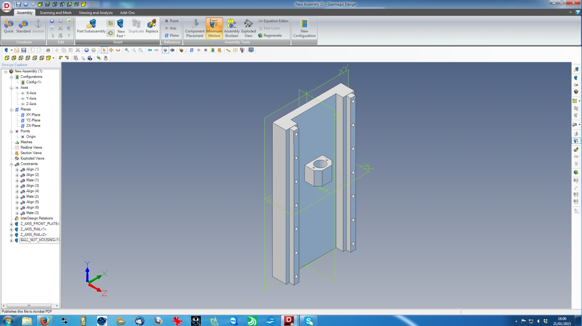 Been drawing up the gantry in Geomagic 3D program today. Getting there, so far all the holes etc. line up!