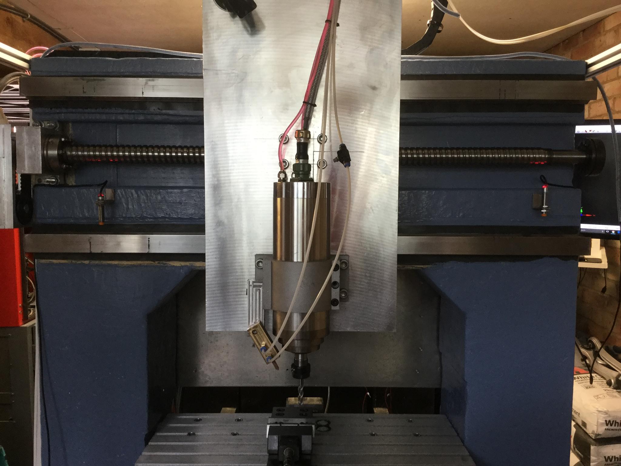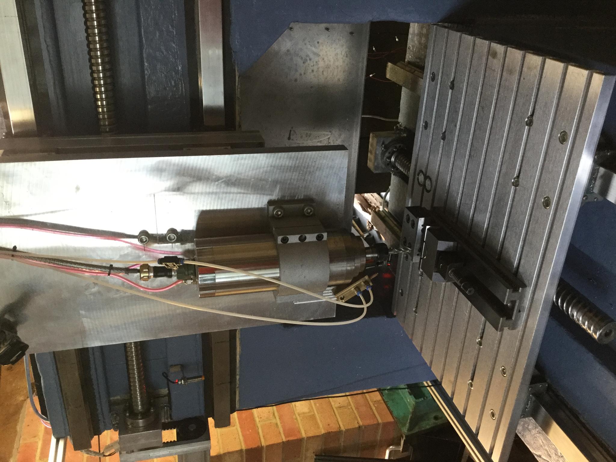 Its an HSD ES909. 6.8KW 24K RPM with ISO 30 tool holding. Small issue to actually power it but working on that. It runs happily off 220V, even though its a 380V unit. I cant get to the wiring to Delta the motor (these came as options for both voltages) so I'm hoping that I can run off 220V for now. It has two thermisotors which will trip if it gets too hot. I dont need to cut at 6 KW, even at 2KW im removing a fair bit of material and I now have an tool changer. Buying balanced ISO 30 holders is pricy but will build up a collection once I am happy that this works reliably.